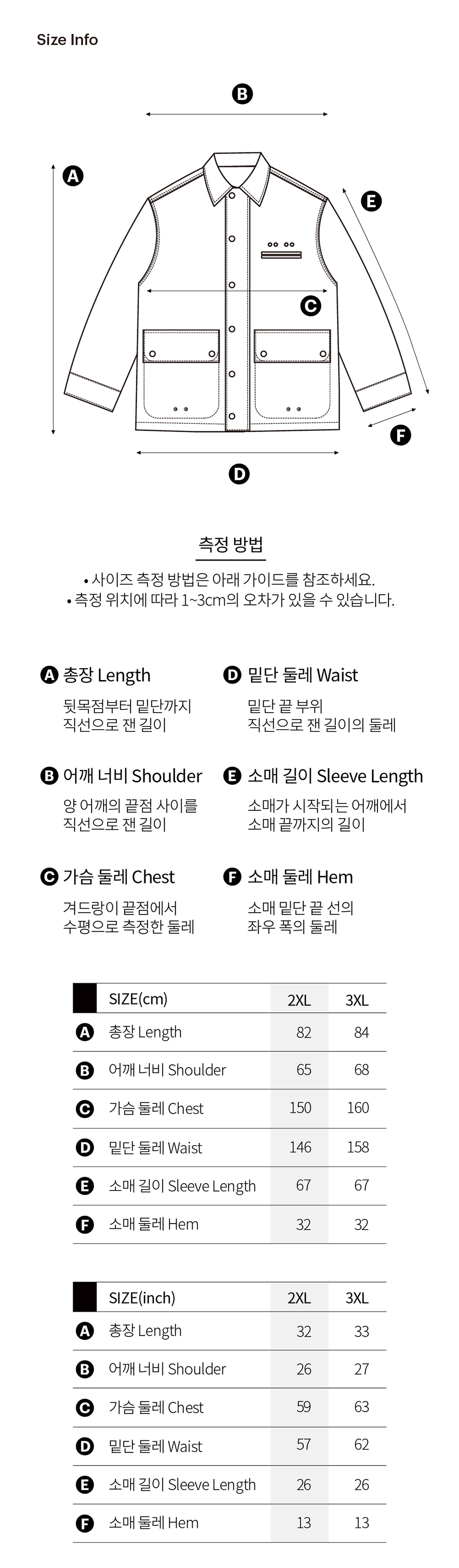 - 상품 상세란의 사이즈표는 업체 기준 측정정보 입니다.