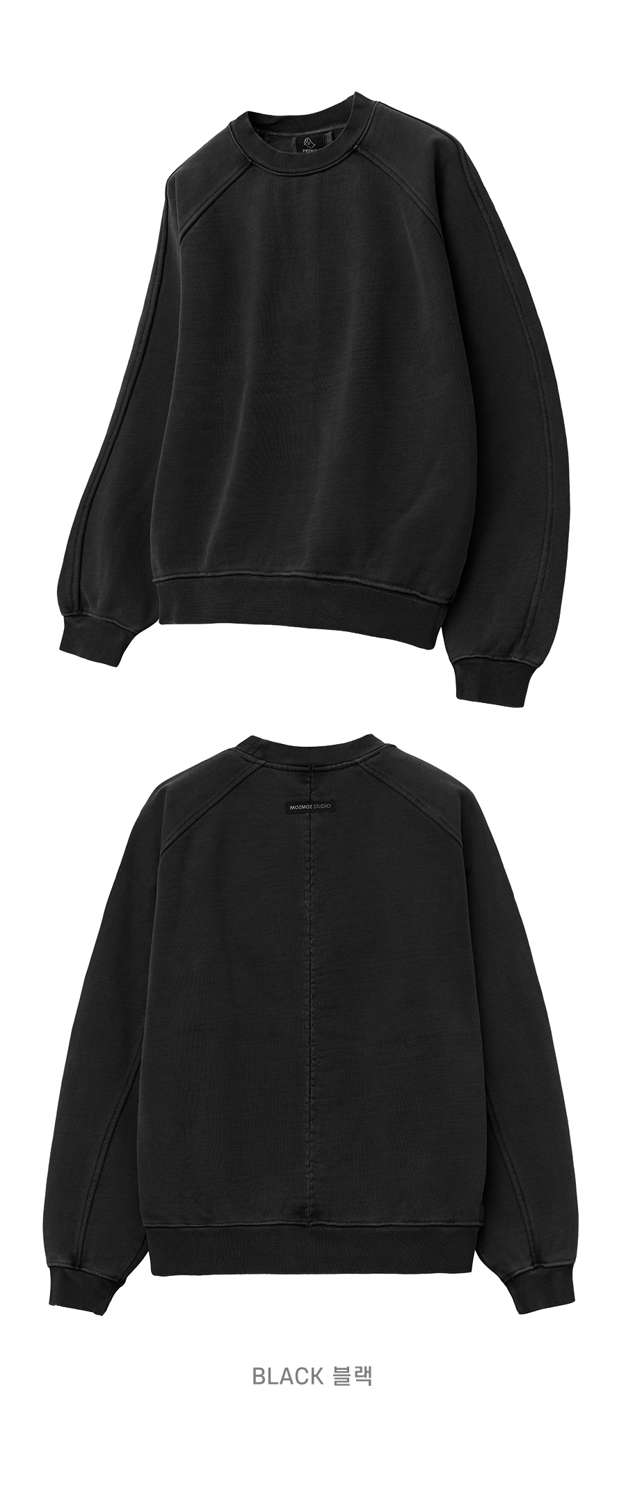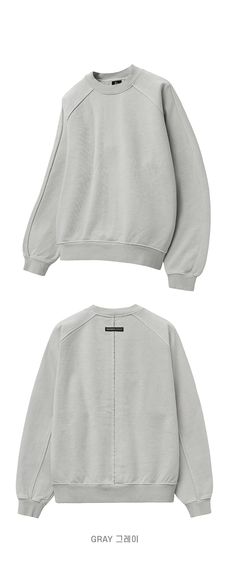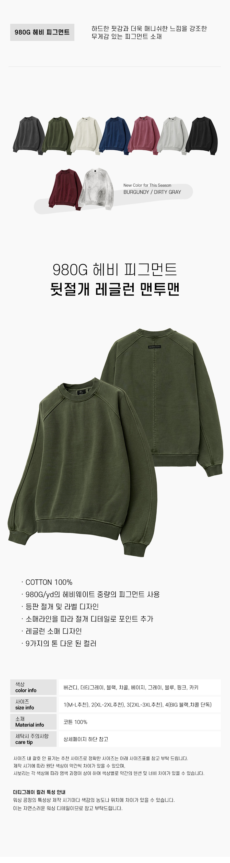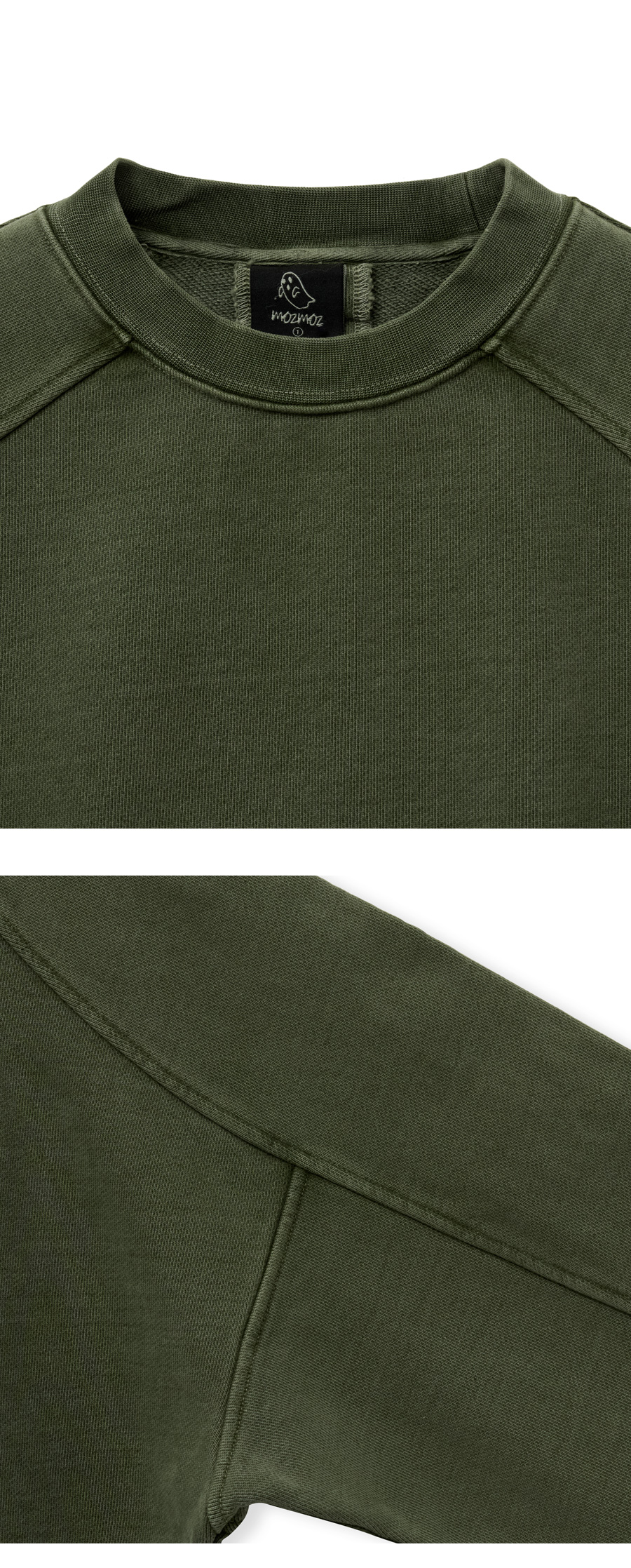 헤비 웨이트 피그먼트 나그랑 뒷절개 오버핏 맨투맨 카키