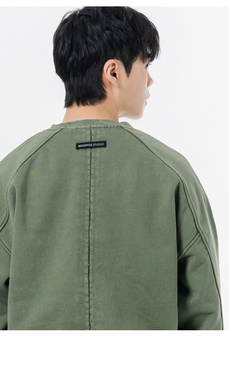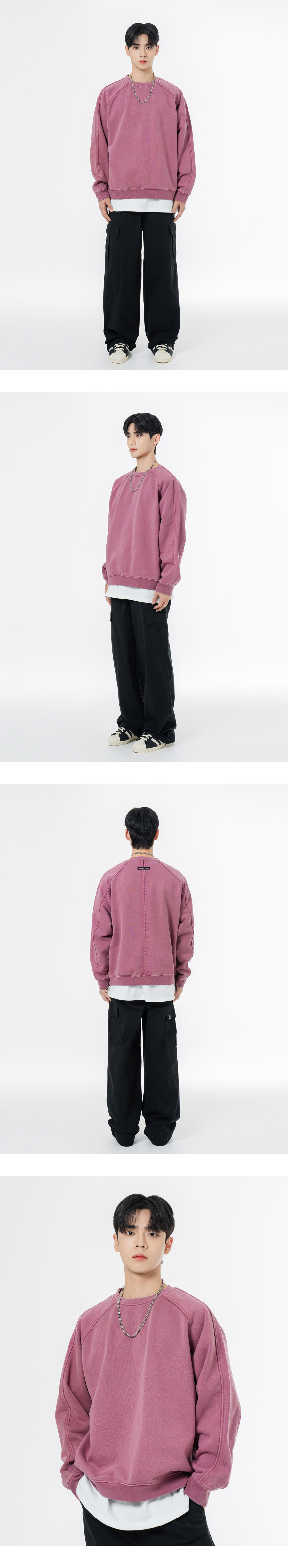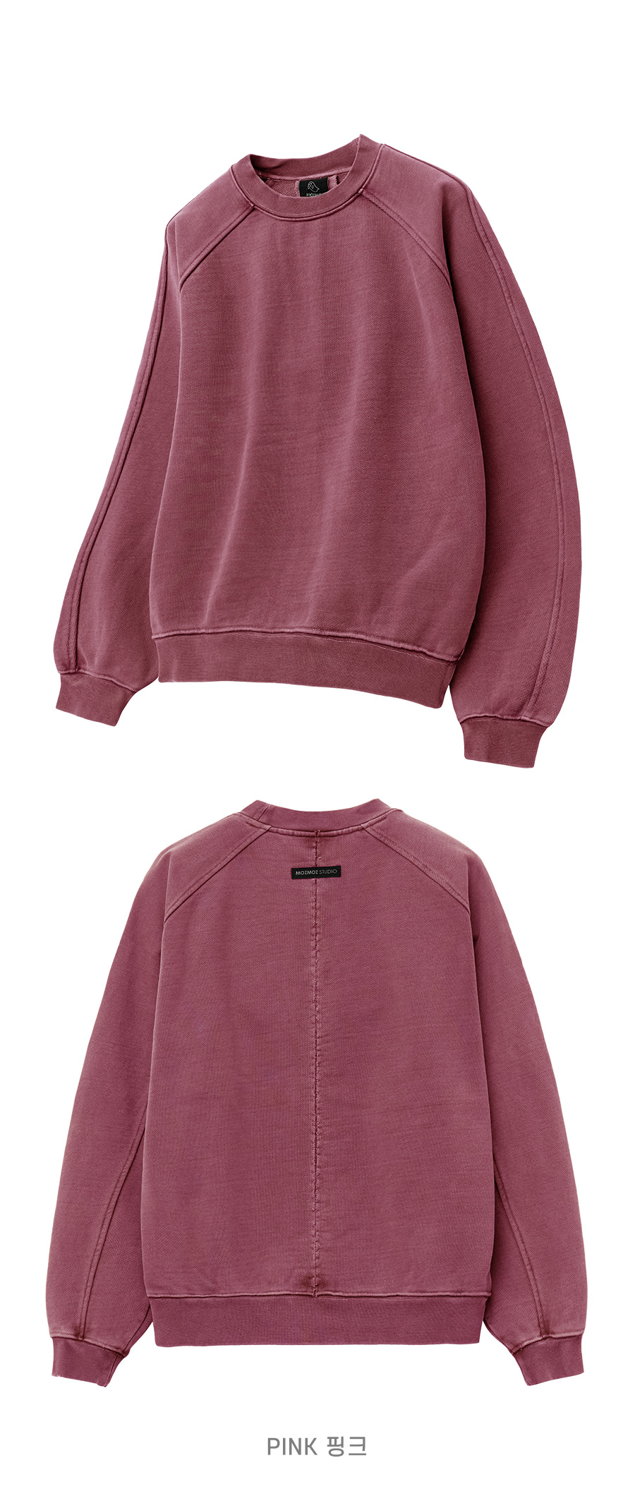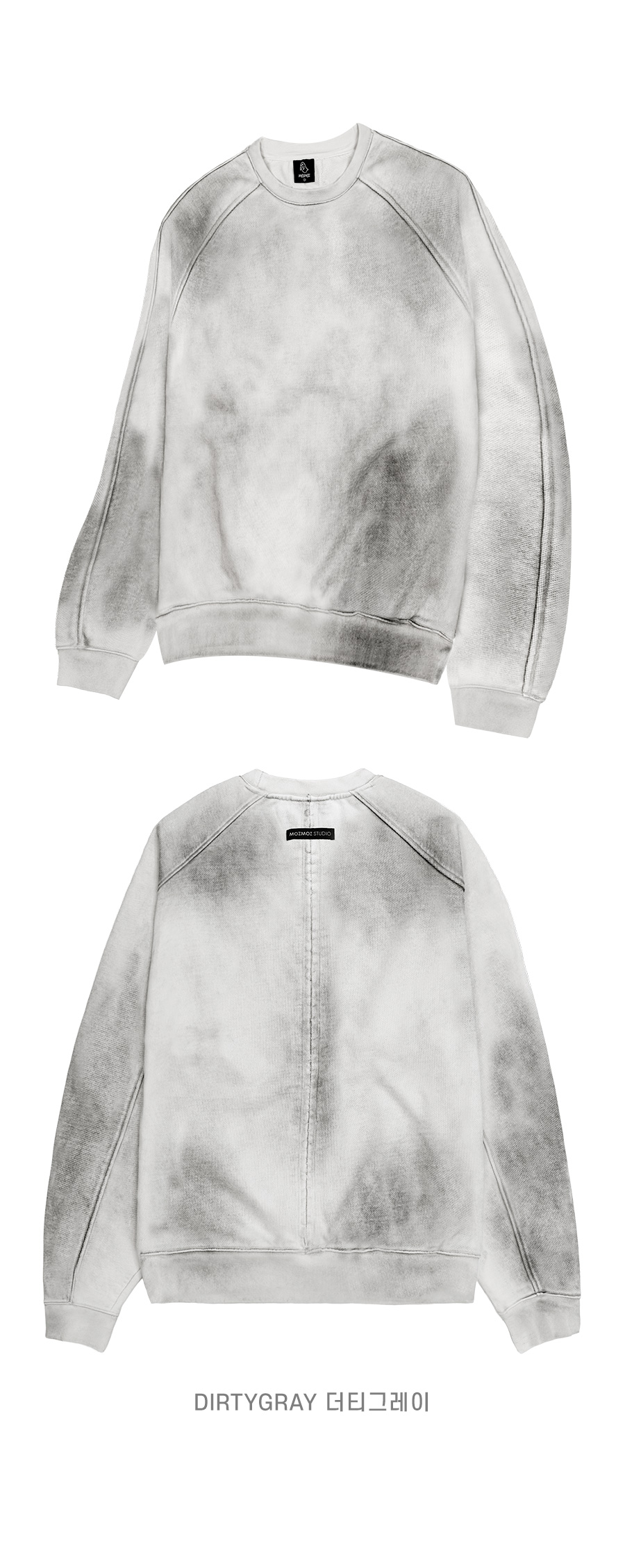헤비 웨이트 피그먼트 나그랑 뒷절개 오버핏 맨투맨 카키