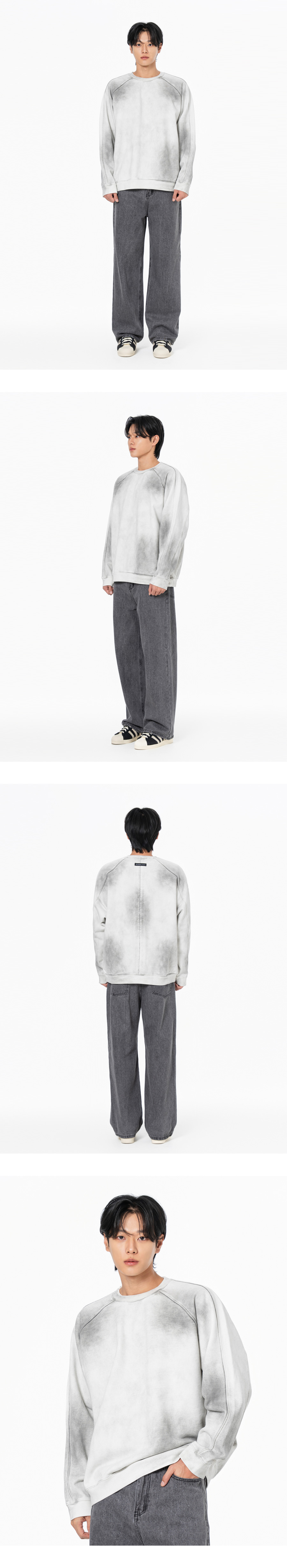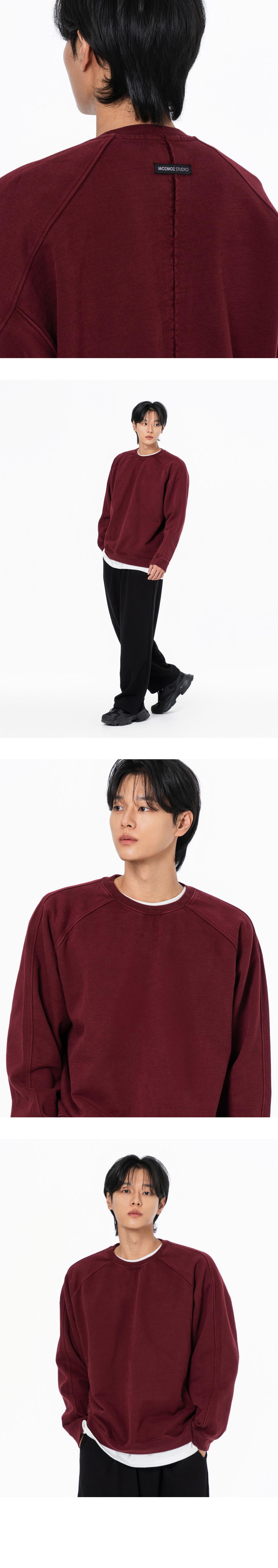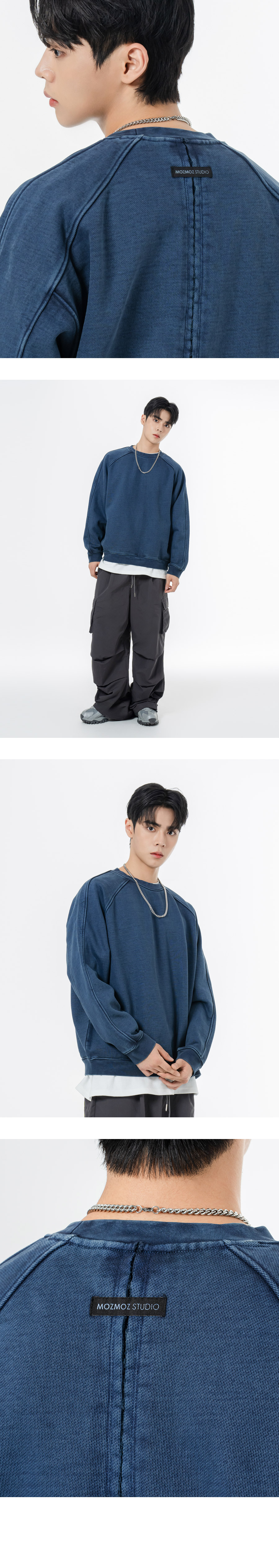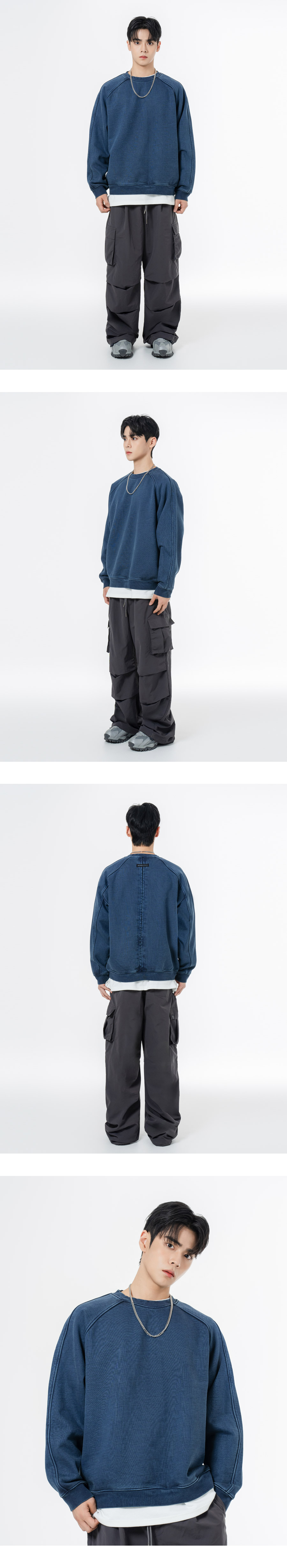 헤비 웨이트 피그먼트 나그랑 뒷절개 오버핏 맨투맨 카키