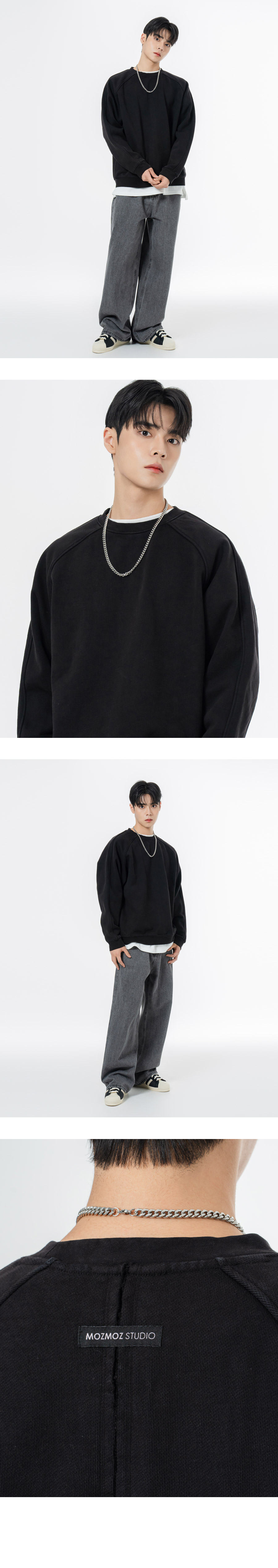 헤비 웨이트 피그먼트 나그랑 뒷절개 오버핏 맨투맨 베이지