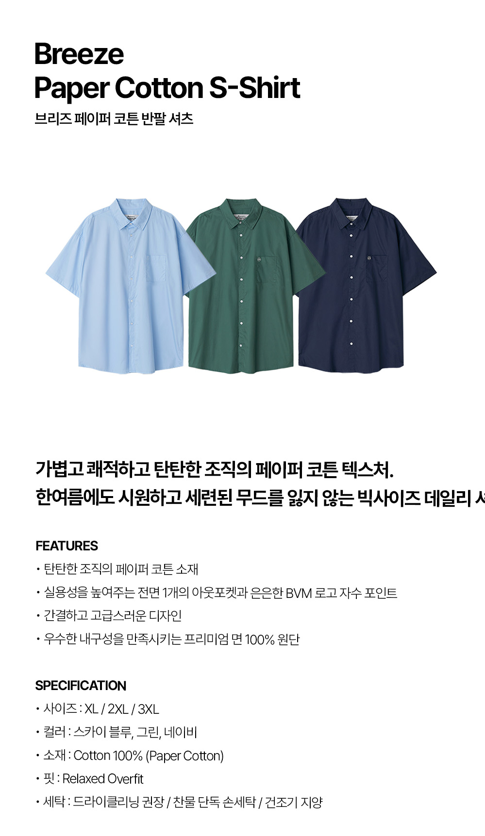 [데일리템]브리즈 페이퍼 코튼 반팔셔츠
