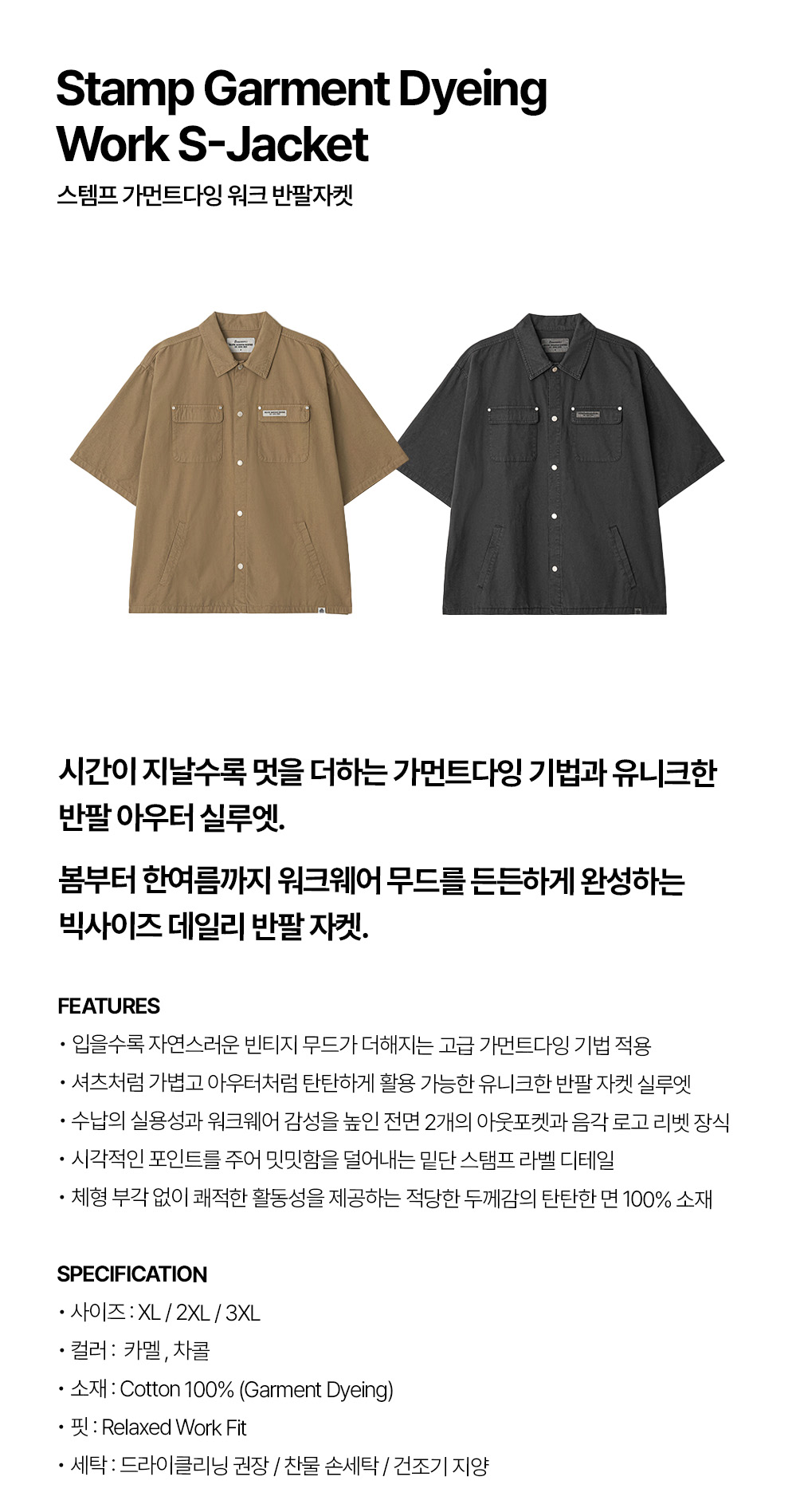 스템프 가먼트다잉 워크 반팔자켓