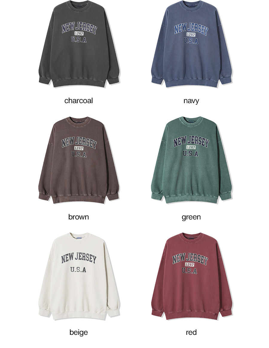 빅이지 남성용 오버핏 뉴저지 피그먼트 맨투맨 6컬러