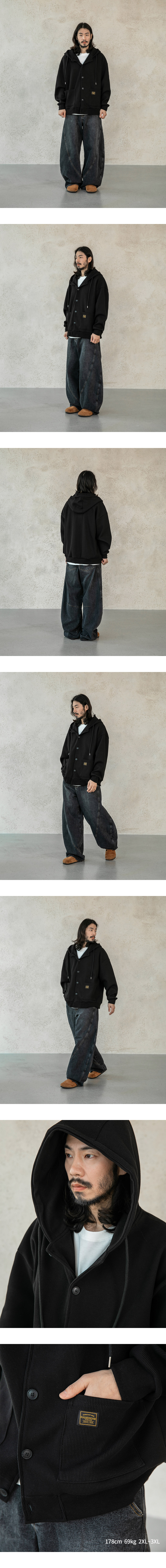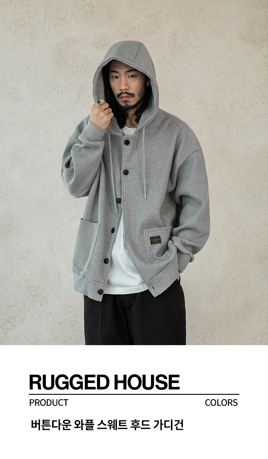 버튼다운 와플 스웨트 후드 가디건 2컬러