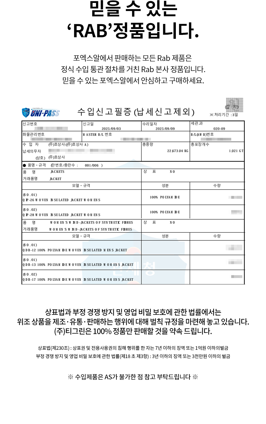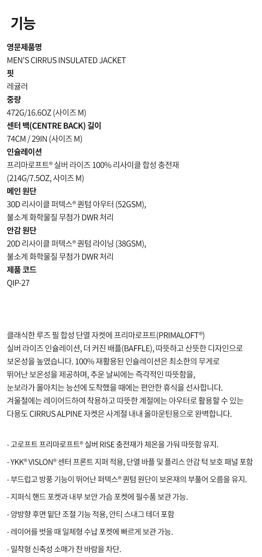 소재 | 겉감 : 폴리아미드(재활용섬유) 100% 안감 : 폴리아미드(재활용섬유) 100% 인슐레이션 : 폴리에스터리사이클 섬유 100% |