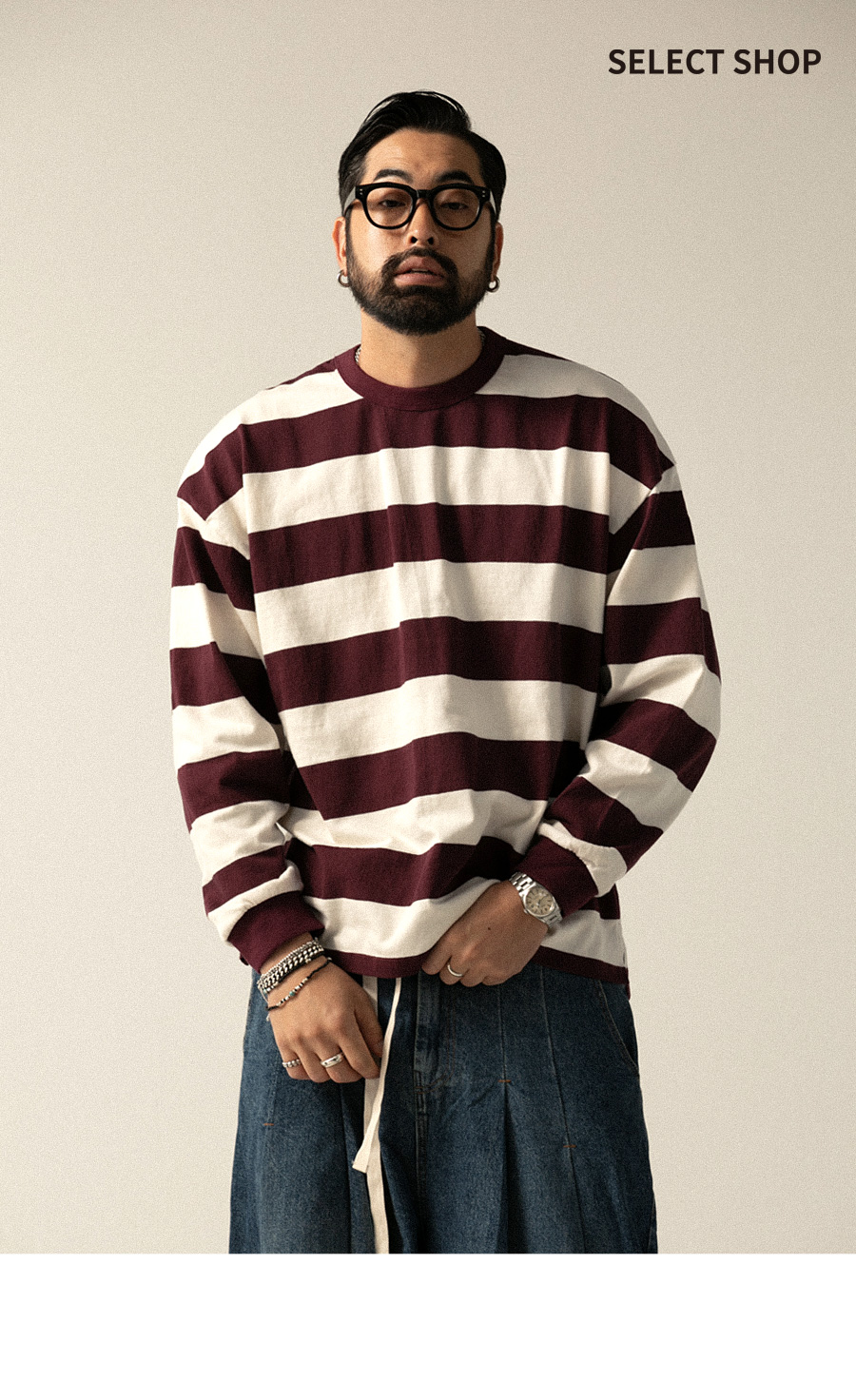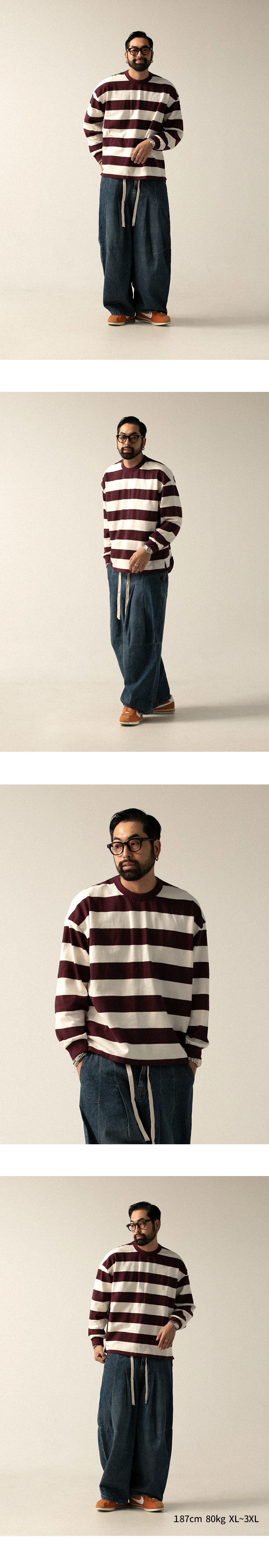 ⦁ 굵은 가로 스트라이프 패턴으로 캐주얼한 포인트 구성