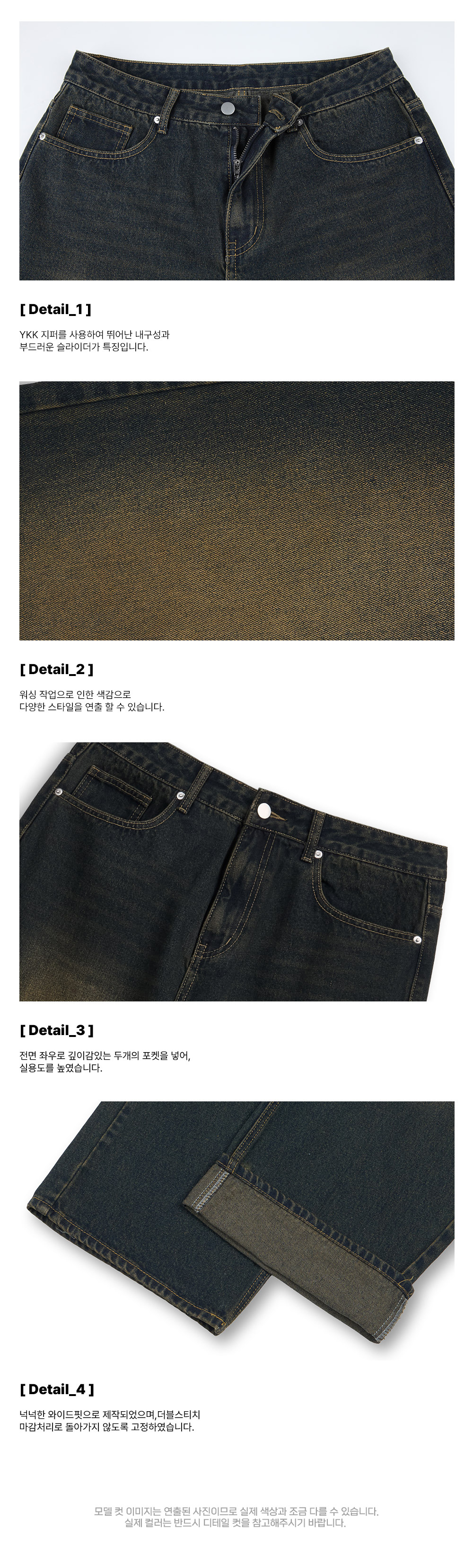 [낫유즈얼][당일배송] 베이직 워싱 와이드 데님 팬츠 4color