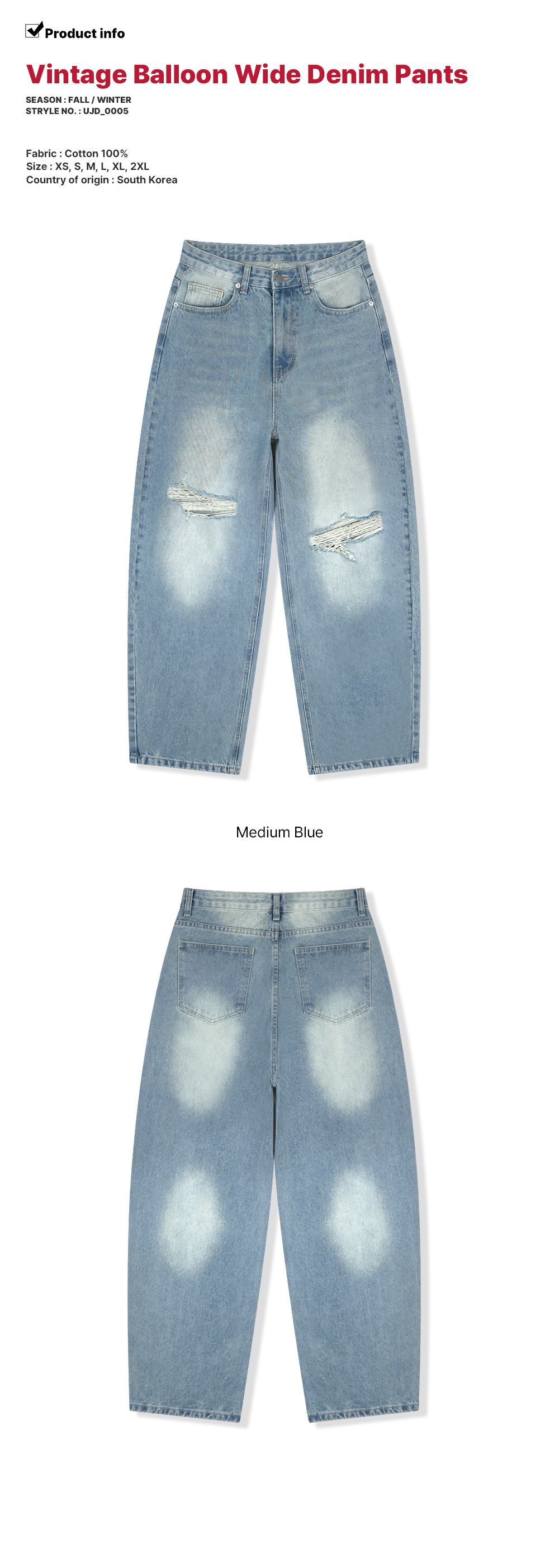 [낫유즈얼][당일배송] 빈티지 벌룬 와이드 데님 팬츠 1color