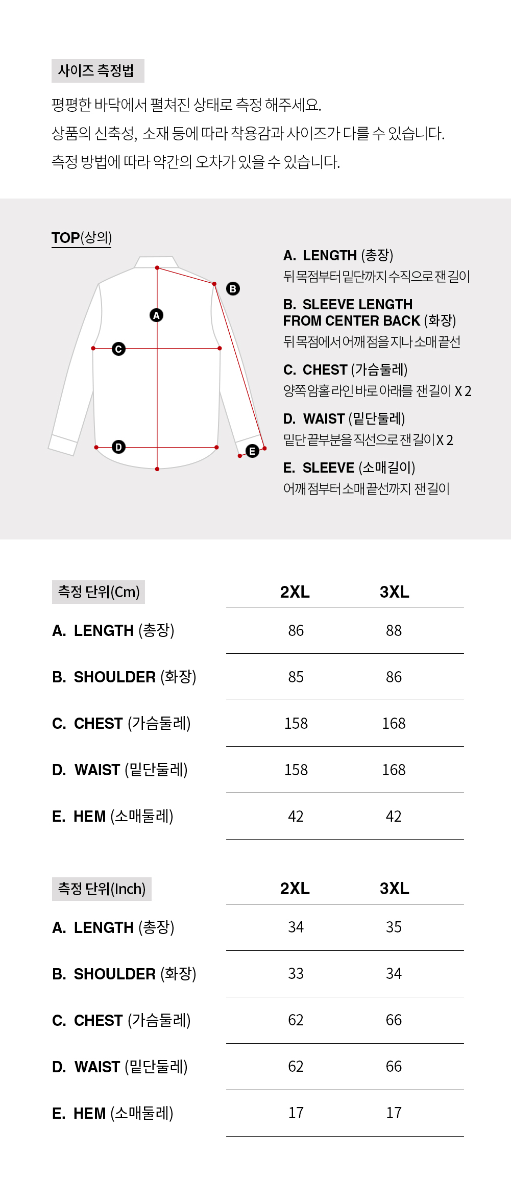 | 어깨 | 가슴둘레 | 소매 | 암홀둘레 | 총길이 | |