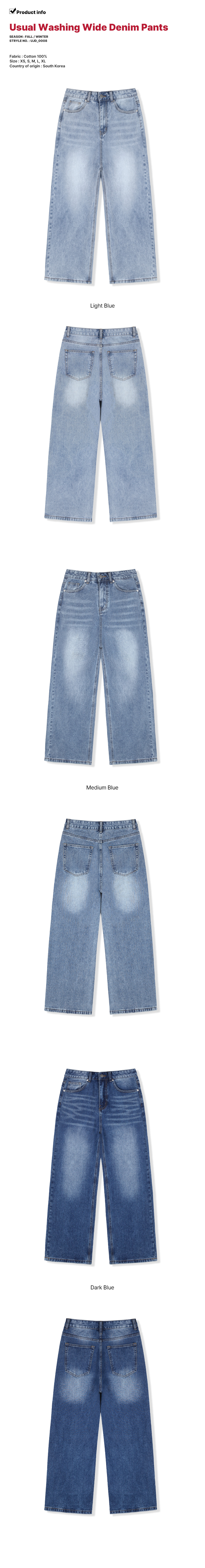 [낫유즈얼][당일배송] 유즈얼 워싱 와이드 데님 팬츠 3color