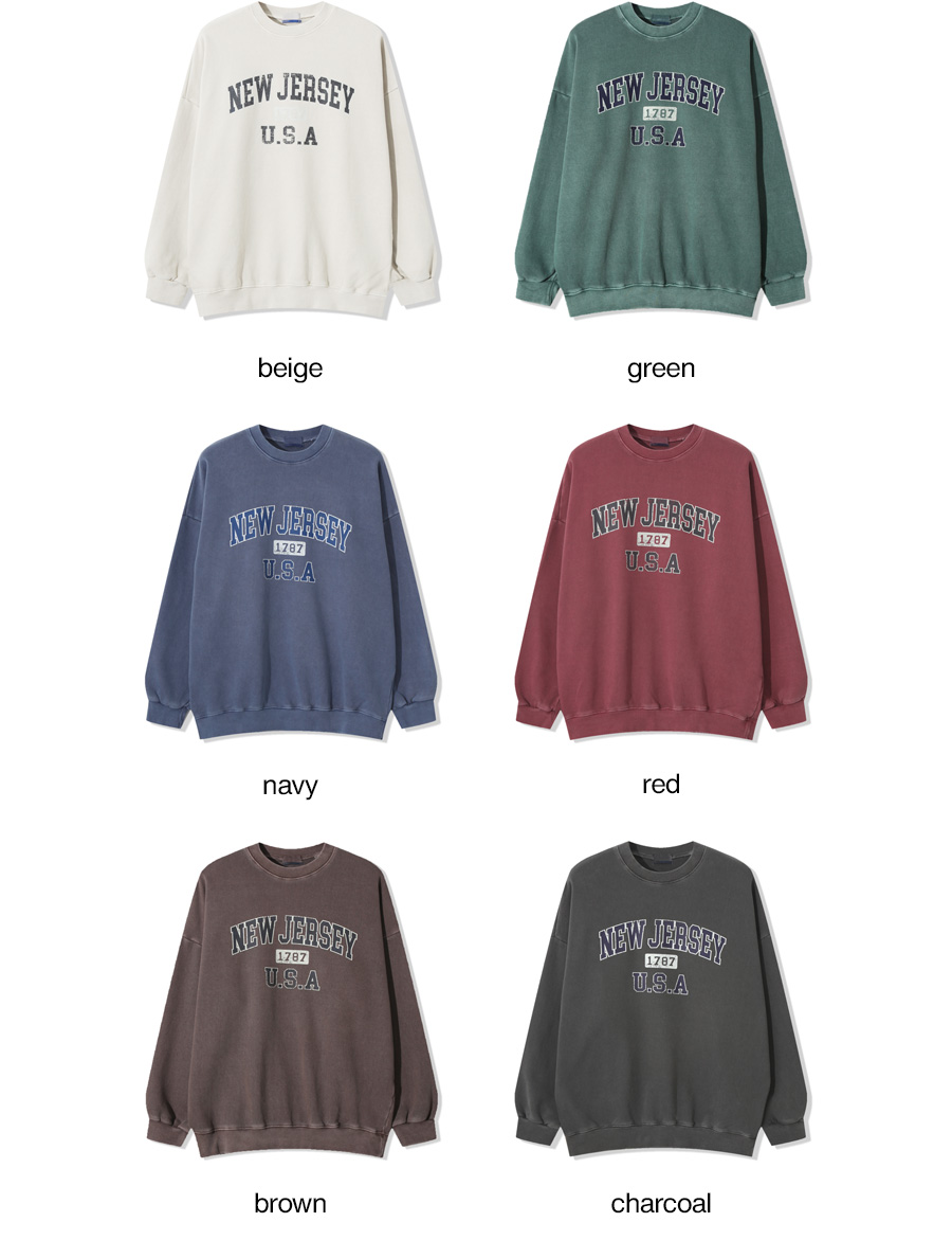 뉴져지 피그먼트 기모 맨투맨 6컬러