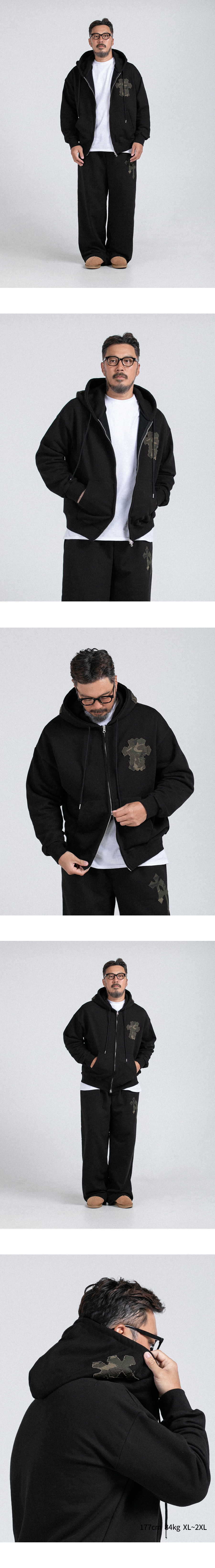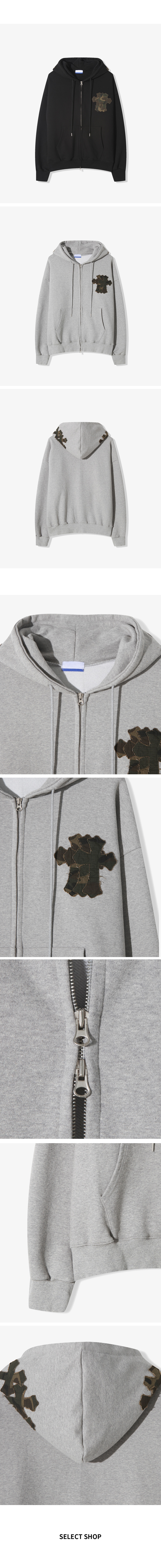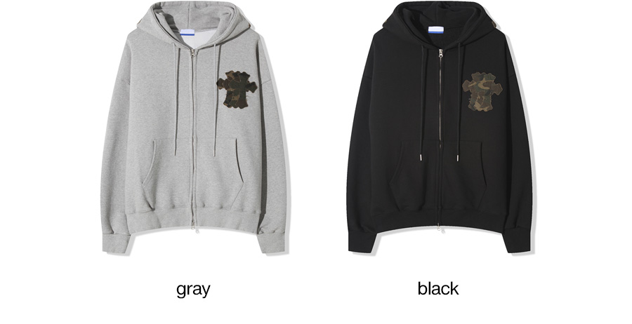 크로스 아플리케 겨울 후드 집업 2컬러