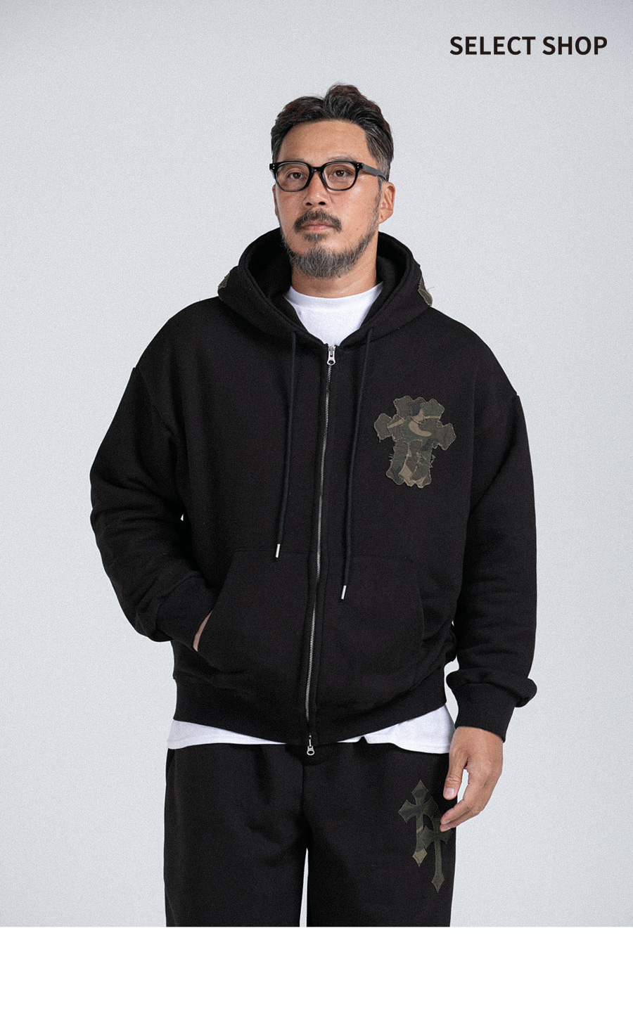 ⦁ 가슴과 후드 부분에 유니크한 패치 디테일이 포인트로 들어가 밋밋함을 덜고 개성을 표현합니다.