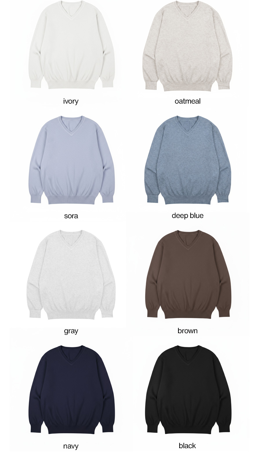 부드러운 비스코스 혼방 소재와 넉넉한 오버핏, 깔끔한 브이넥 라인이 돋보이는 니트입니다.