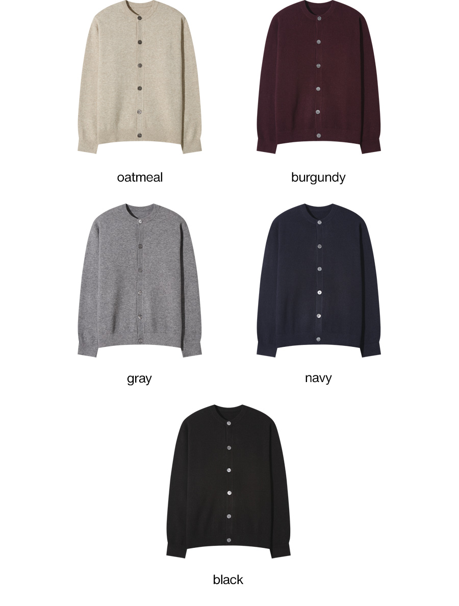 군더더기 없이 깔끔한 라운드넥 라인과 전면 단추 디테일로 단정하면서도 캐주얼한 무드를 연출합니다. 셔츠나 터틀넥 위에 레이어드하여 활용하기 좋으며, 단독으로 입어도 깔끔합니다.