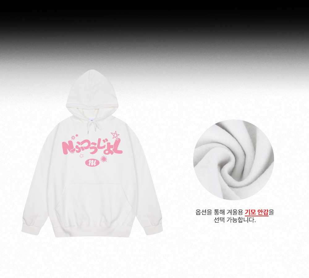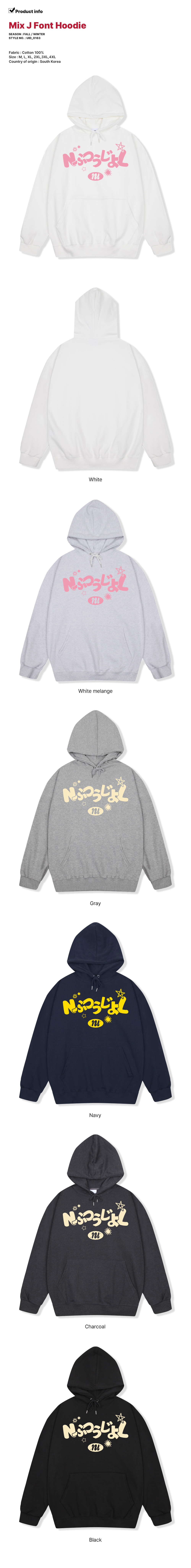 [논기모/기모][국내생산] 오버핏 빅사이즈 남녀공용 믹스J폰트 후드티 6color