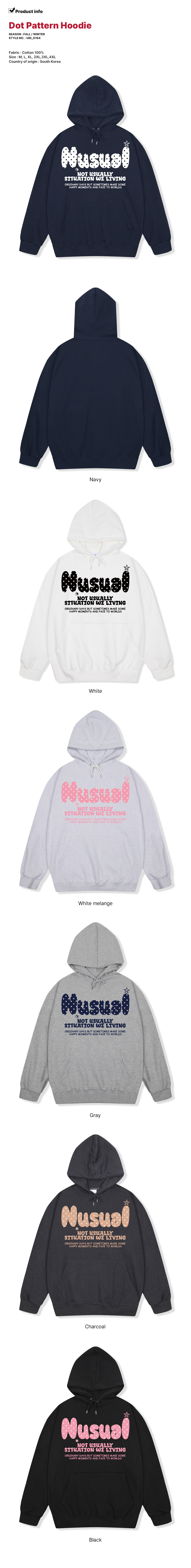 [논기모/기모][국내생산] 오버핏 빅사이즈 남녀공용 도트패턴 후드티 6color