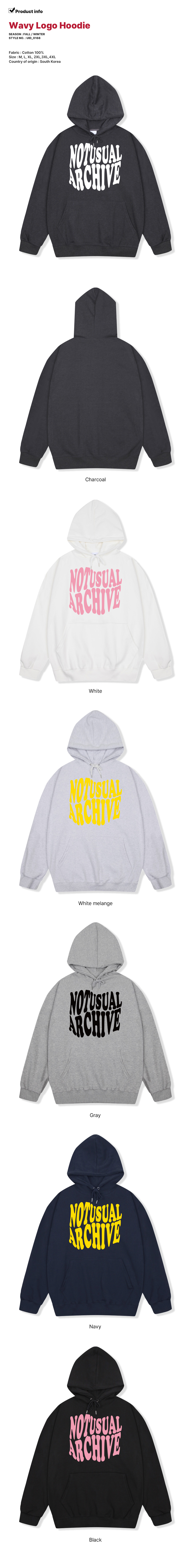 [논기모/기모][국내생산] 오버핏 빅사이즈 남녀공용 웨이비로고 후드티 6color