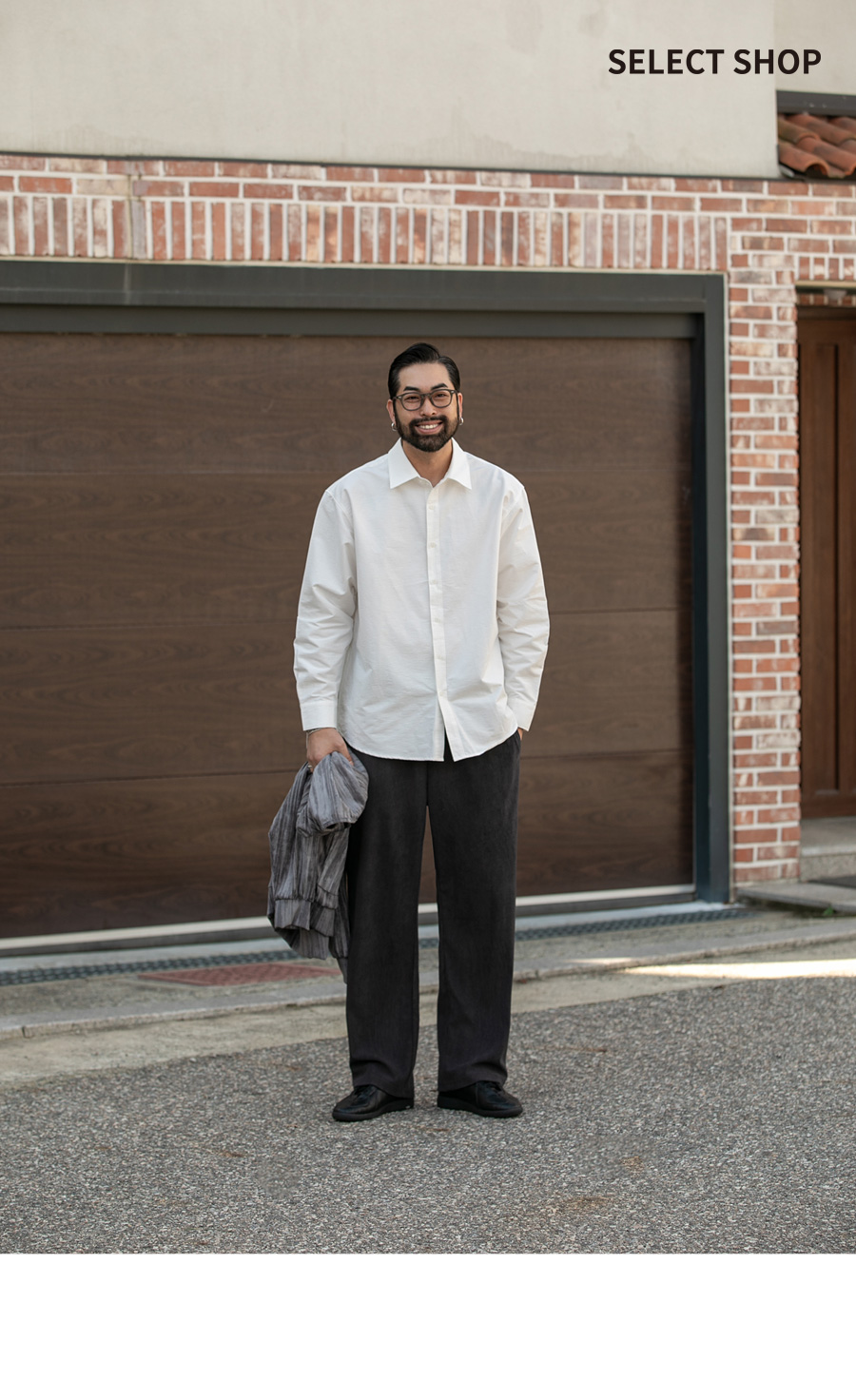 ⦁ 허벅지부터 밑단까지 간결하게 떨어지는 스트레이트 핏 또는 세미 와이드 핏으로 트렌디하면서도 단정한 실루엣 연출