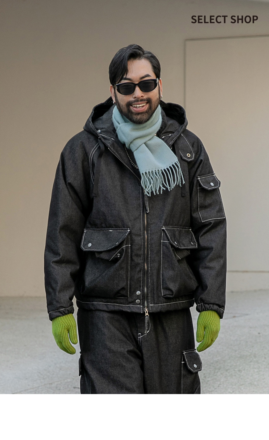 ⦁ 데님 소재로 제작되었으며, 안감은 따뜻한 퀼팅 처리가 되어 있어 보온성이 뛰어난 아우터입니다.