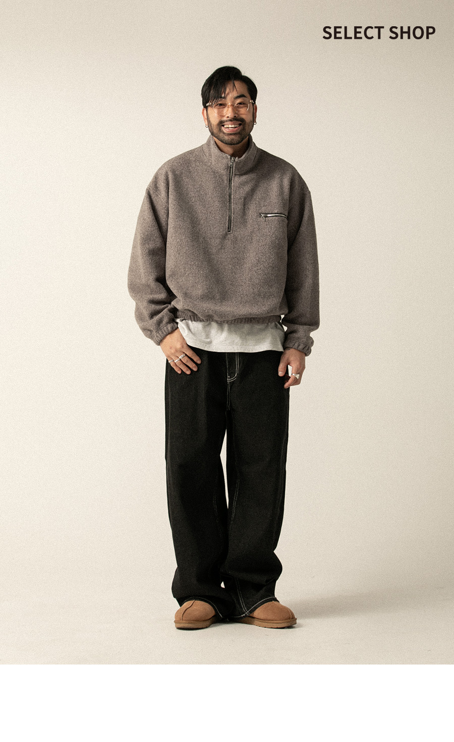 ⦁ 넉넉하고 트렌디한 와이드핏 실루엣 표현으로 활동성이 좋으며 멋스러운 핏을 연출합니다.