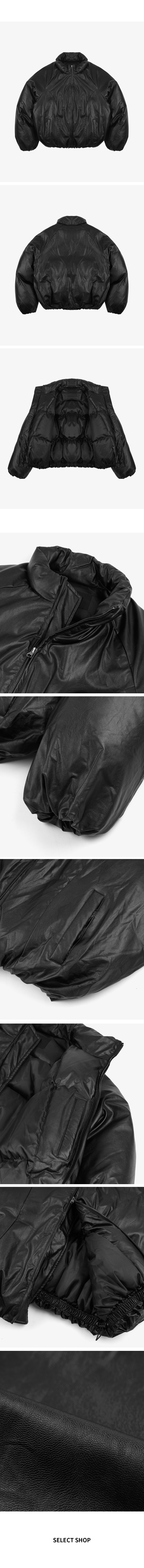⦁ 고급스러운 질감의 인조 가죽 소재로 제작되어 트렌디한 무드를 연출하는 패딩 점퍼입니다.