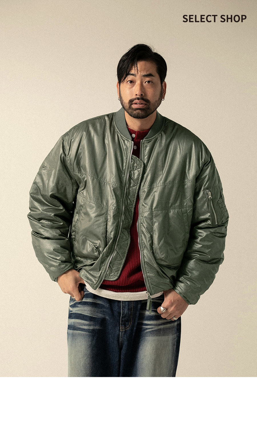⦁ 글로시 한 나일론 위로 은은한 크랙이 들어가 적절한 광택의 고급스러운 패브릭