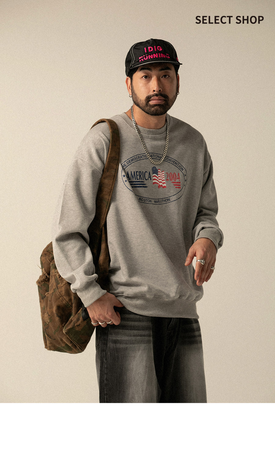⦁ 넉넉한 품의 오버핏 실루엣 표현으로 활동하기 편하며 트렌디한 캐주얼룩을 연출합니다.