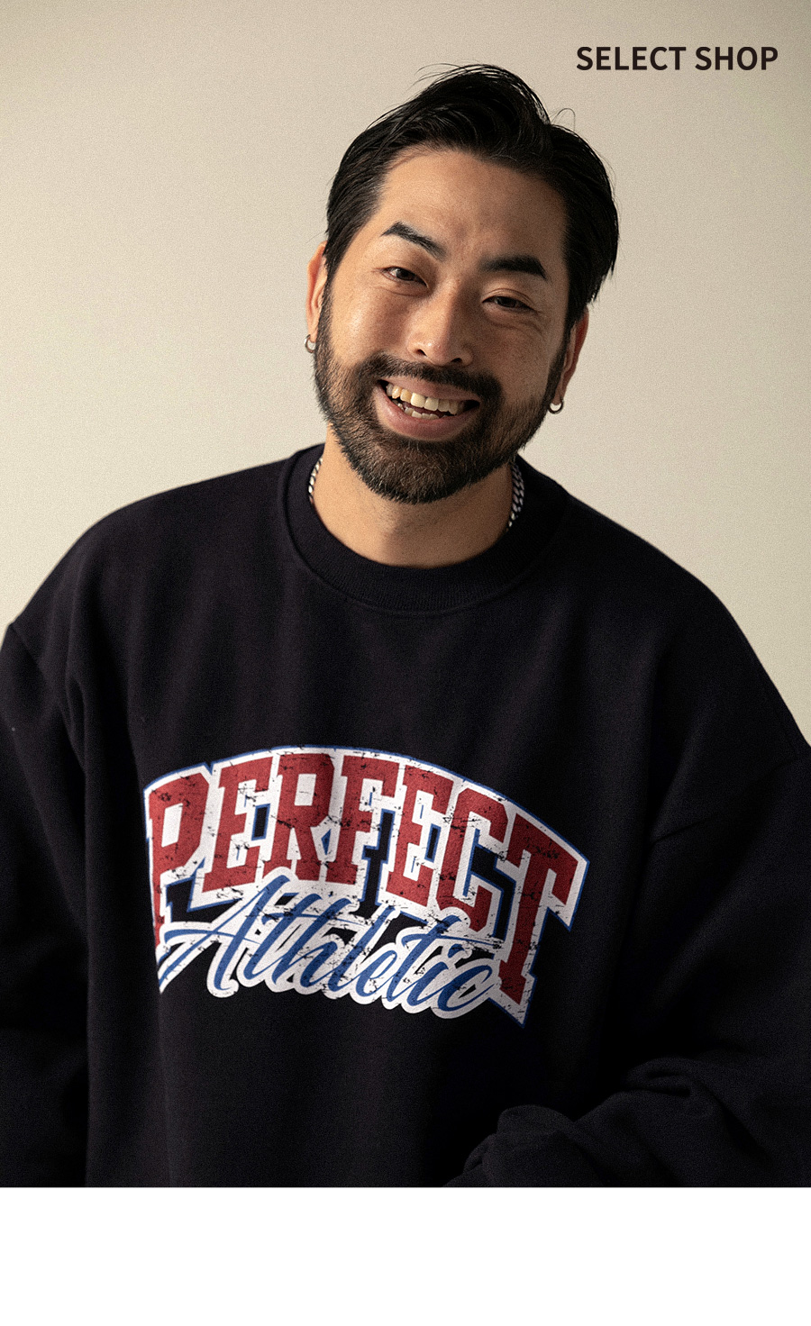 ⦁ 전면에 캐주얼하고 폰트의 아치형 그래픽 프린트를 넣어 룩에 포인트를 주었습니다.