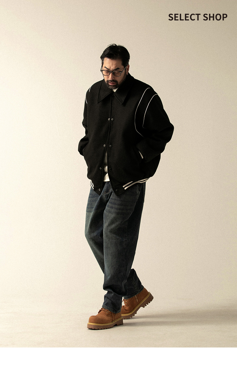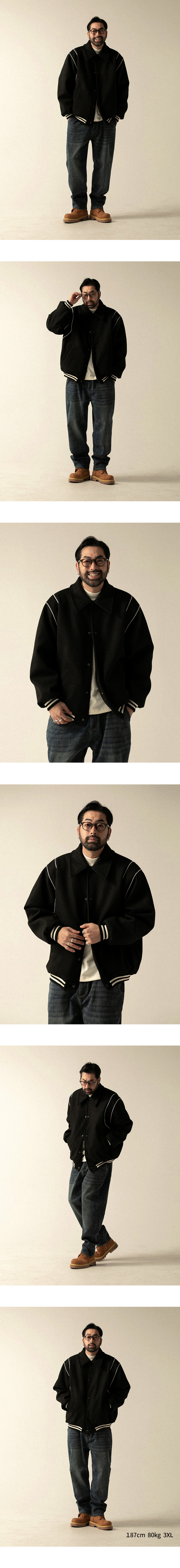 캐주얼 하게 어디에나 손쉽게 코디하기 좋고 편안함을 갖춘 울 바시티 자켓 입니다. 데님팬츠, 코튼팬츠 등 여러 하의와 스타일링이 가능하고 폭넓은 사이즈로 다양하게 입으실 수 있습니다.