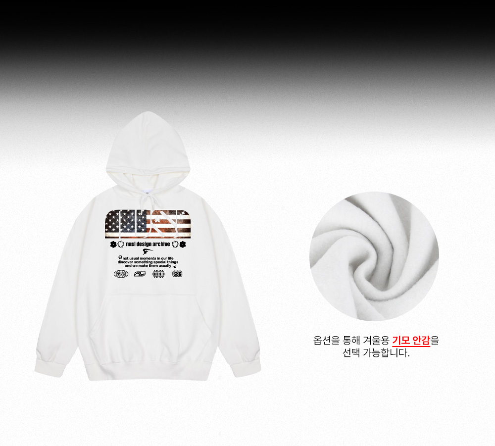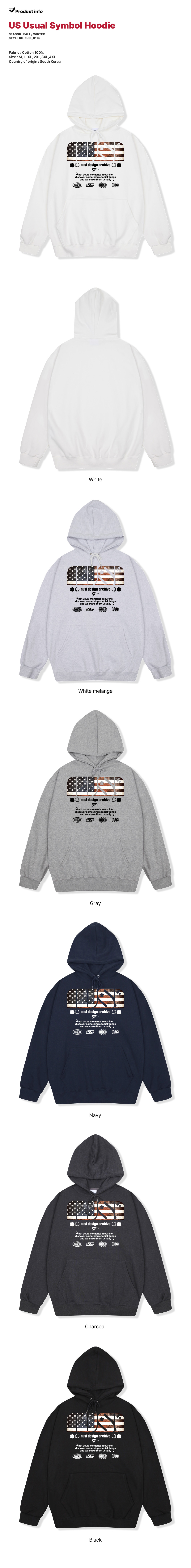 [당일배송][기모선택가능] 오버핏 빅사이즈 남녀공용 US 유즈얼심볼 후드티 6color
