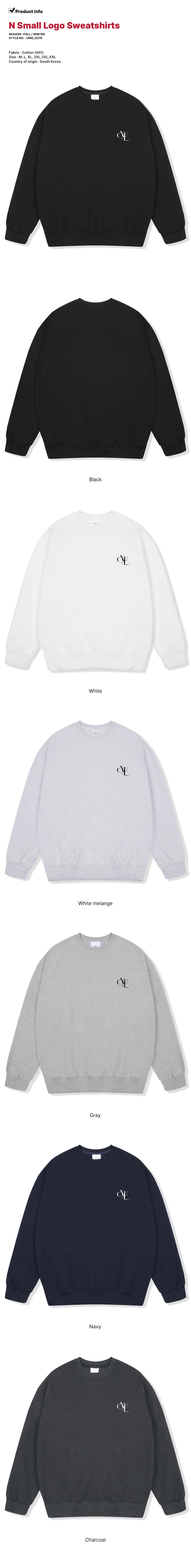 [당일배송][기모선택가능] 오버핏 빅사이즈 남녀공용 N스몰로고 맨투맨 6color