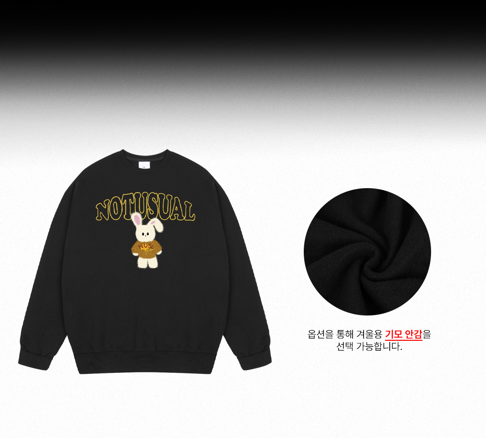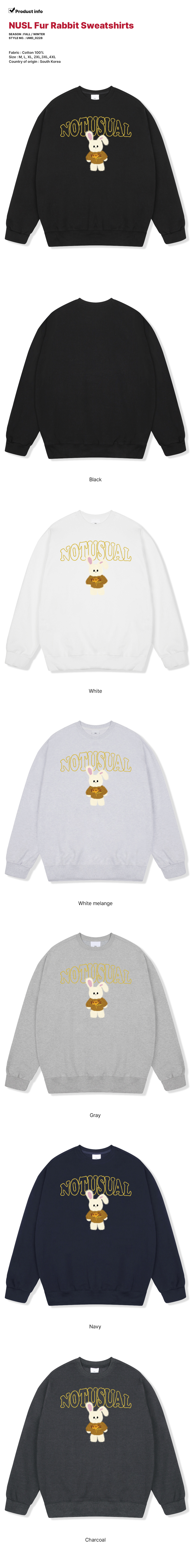 [당일배송][기모선택가능] 오버핏 빅사이즈 남녀공용 NUSL 퍼 레빗 맨투맨 6color