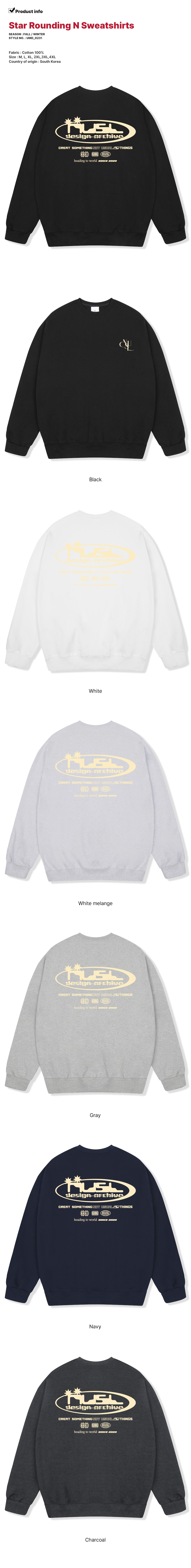 [당일배송][기모선택가능] 오버핏 빅사이즈 남녀공용 스타라운딩N 맨투맨 6color