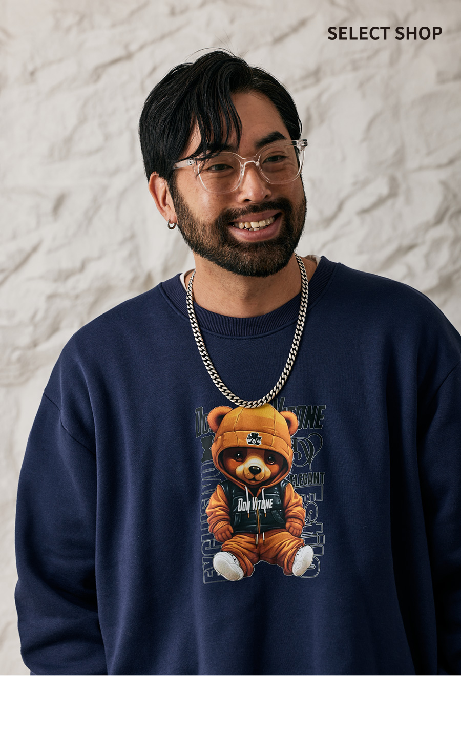 ⦁ 전면에 후드티를 입은 듯한 테디베어 캐릭터 프린팅이 있습니다.