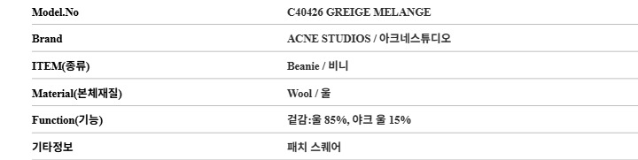 [아크네스튜디오 ACNE STUDIOS] C40426 GREIGE MELANGE 공용 비니