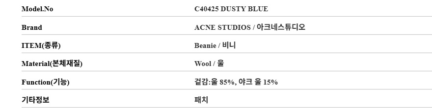 [아크네스튜디오 ACNE STUDIOS] C40425 DUSTY BLUE 공용 비니