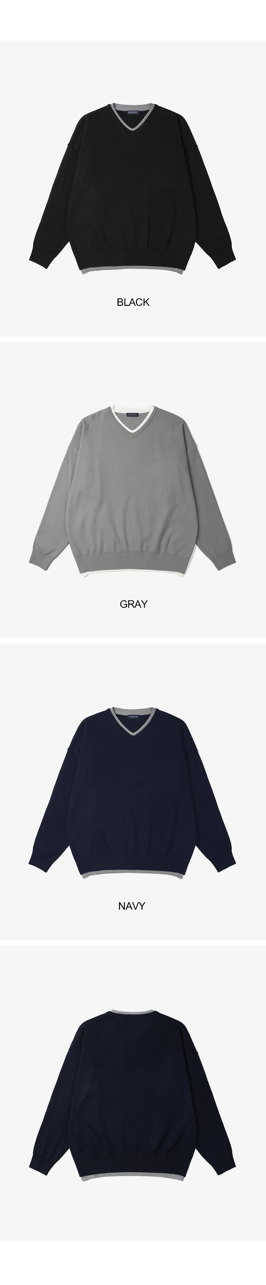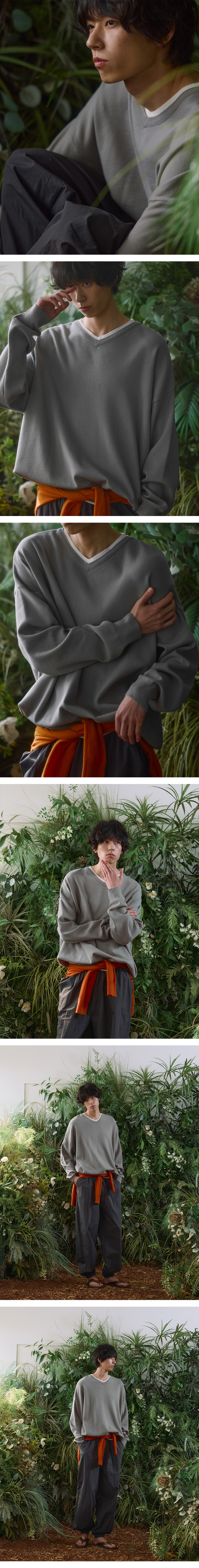 ⦁ 14게이지 플래인 짜임의 깔끔한 브이넥 니트