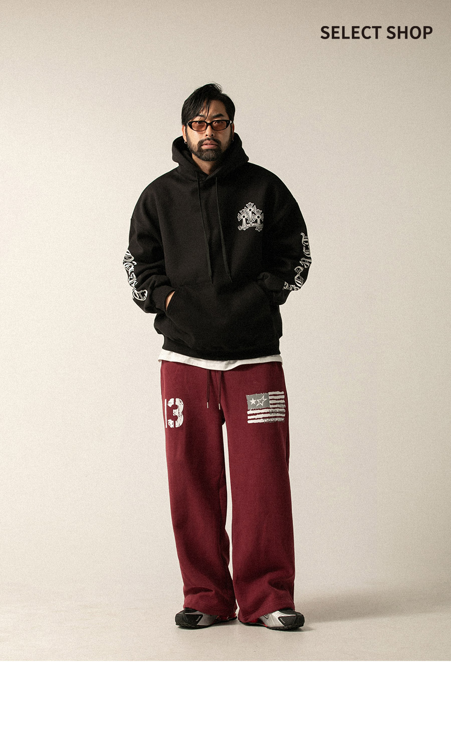⦁ 트렌디한 빈티지 그래픽 포인트가 돋보이는 와이드 팬츠입니다