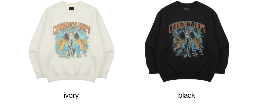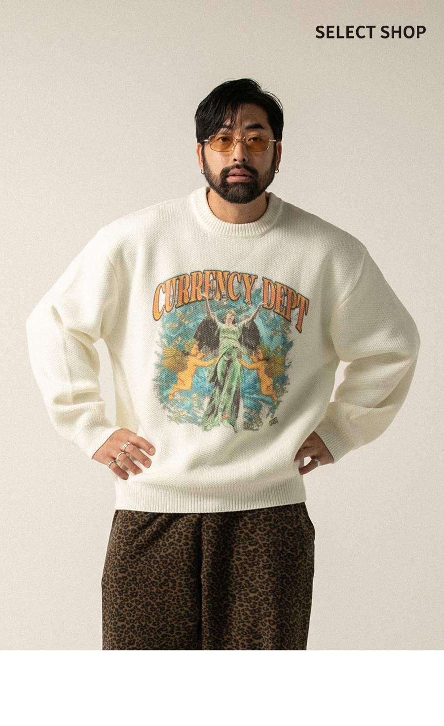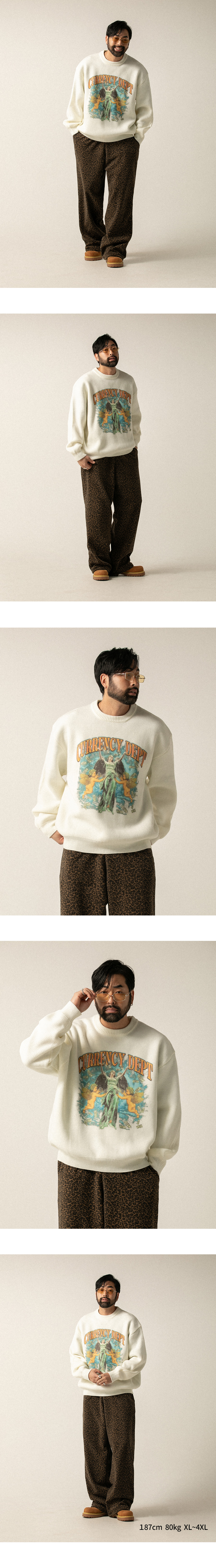 ⦁ 빈티지한 무드의 그래픽이 돋보이는 니트 웨어입니다