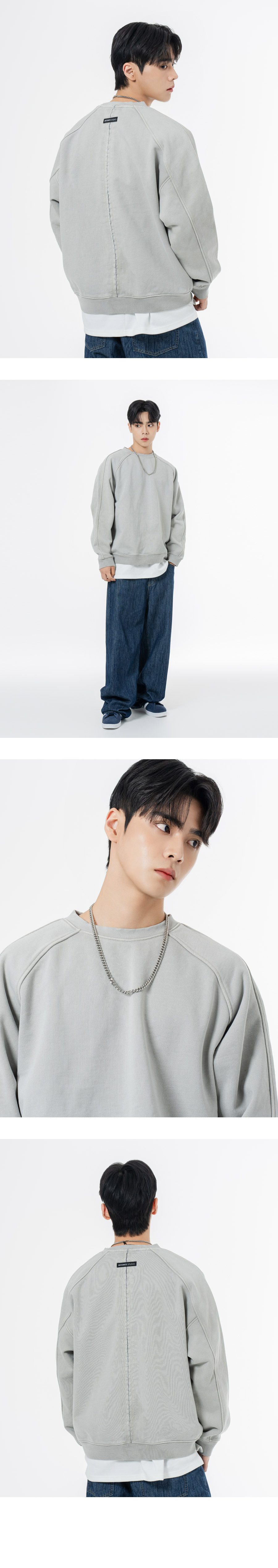 헤비 웨이트 피그먼트 나그랑 뒷절개 오버핏 맨투맨 더티그레이