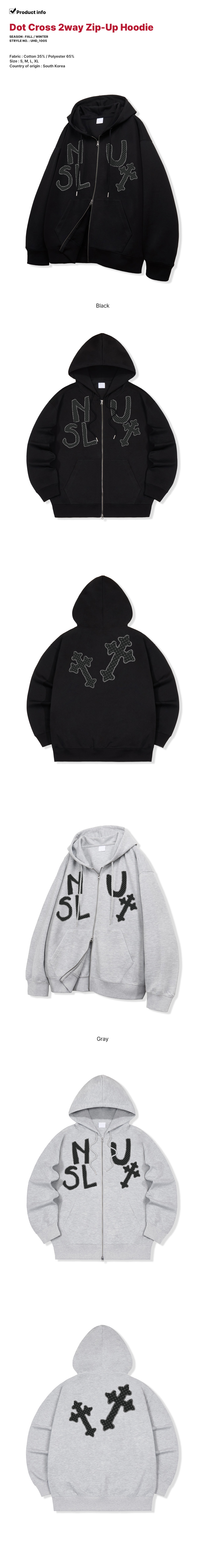 [당일배송] 오버핏 빅사이즈 남녀공용 도트크로스 2way 후드집업 2color