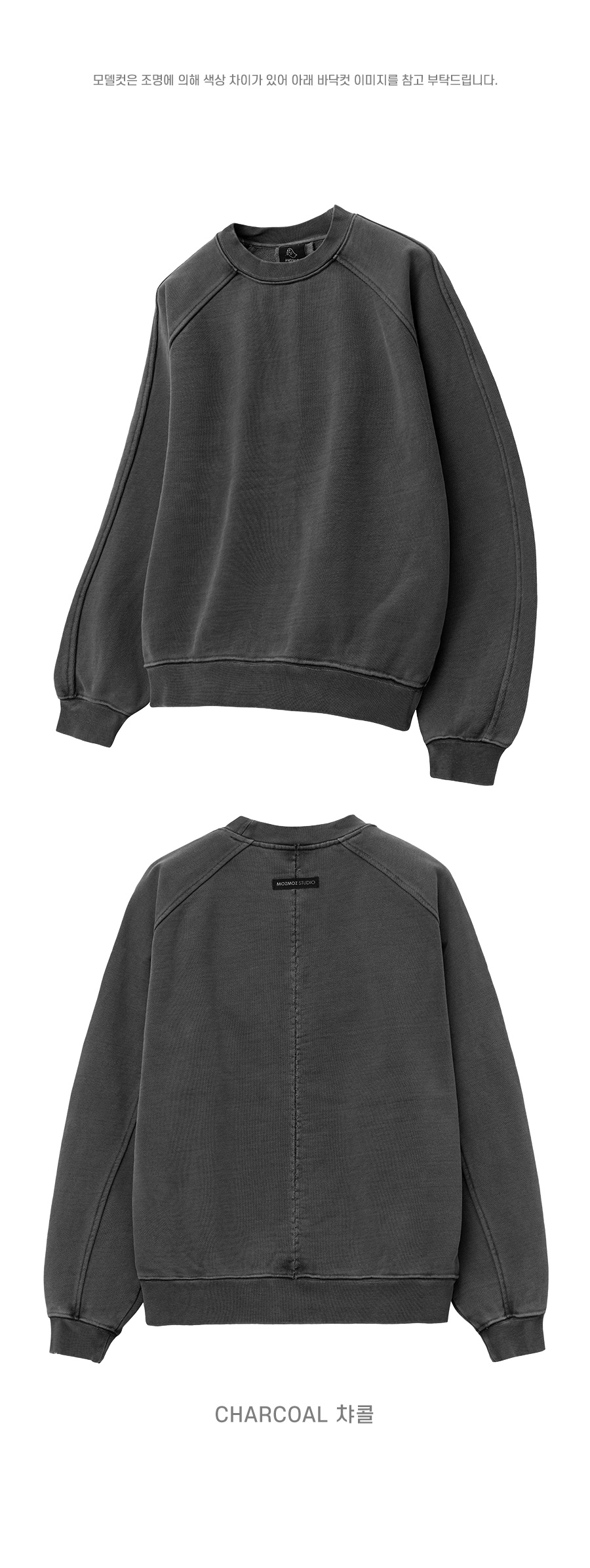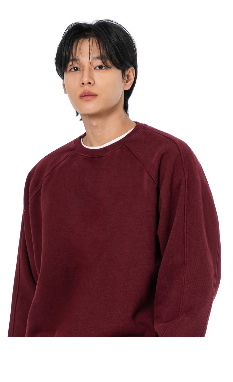 헤비 웨이트 피그먼트 나그랑 뒷절개 오버핏 맨투맨 버건디