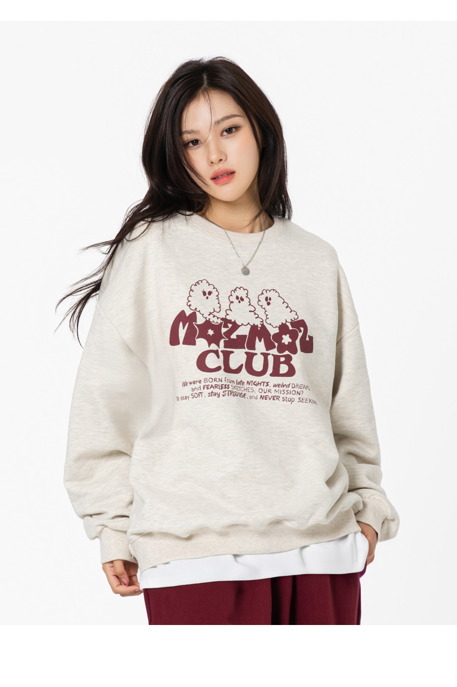 고스트 클라우드 그래픽 오버핏 맨투맨 오트밀