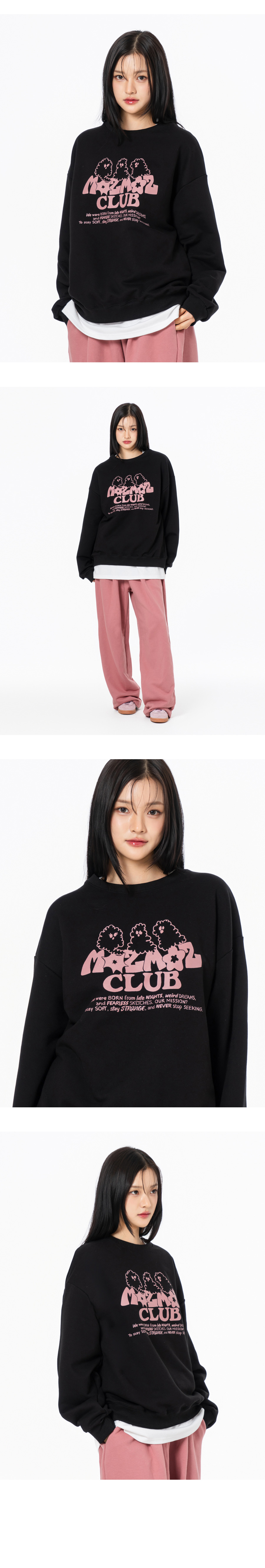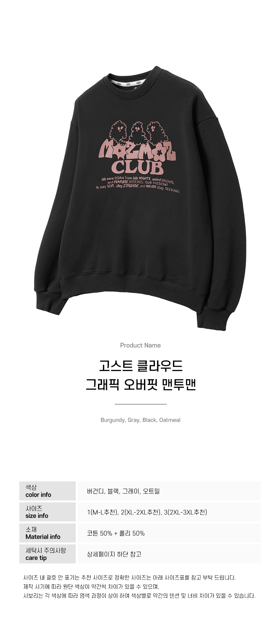 고스트 클라우드 그래픽 오버핏 맨투맨 블랙