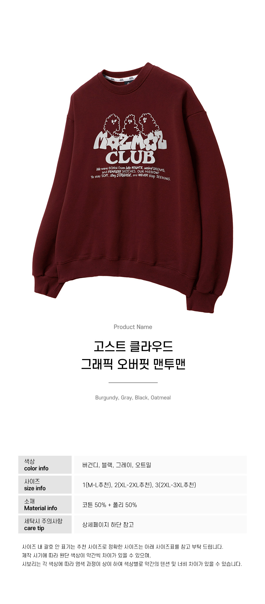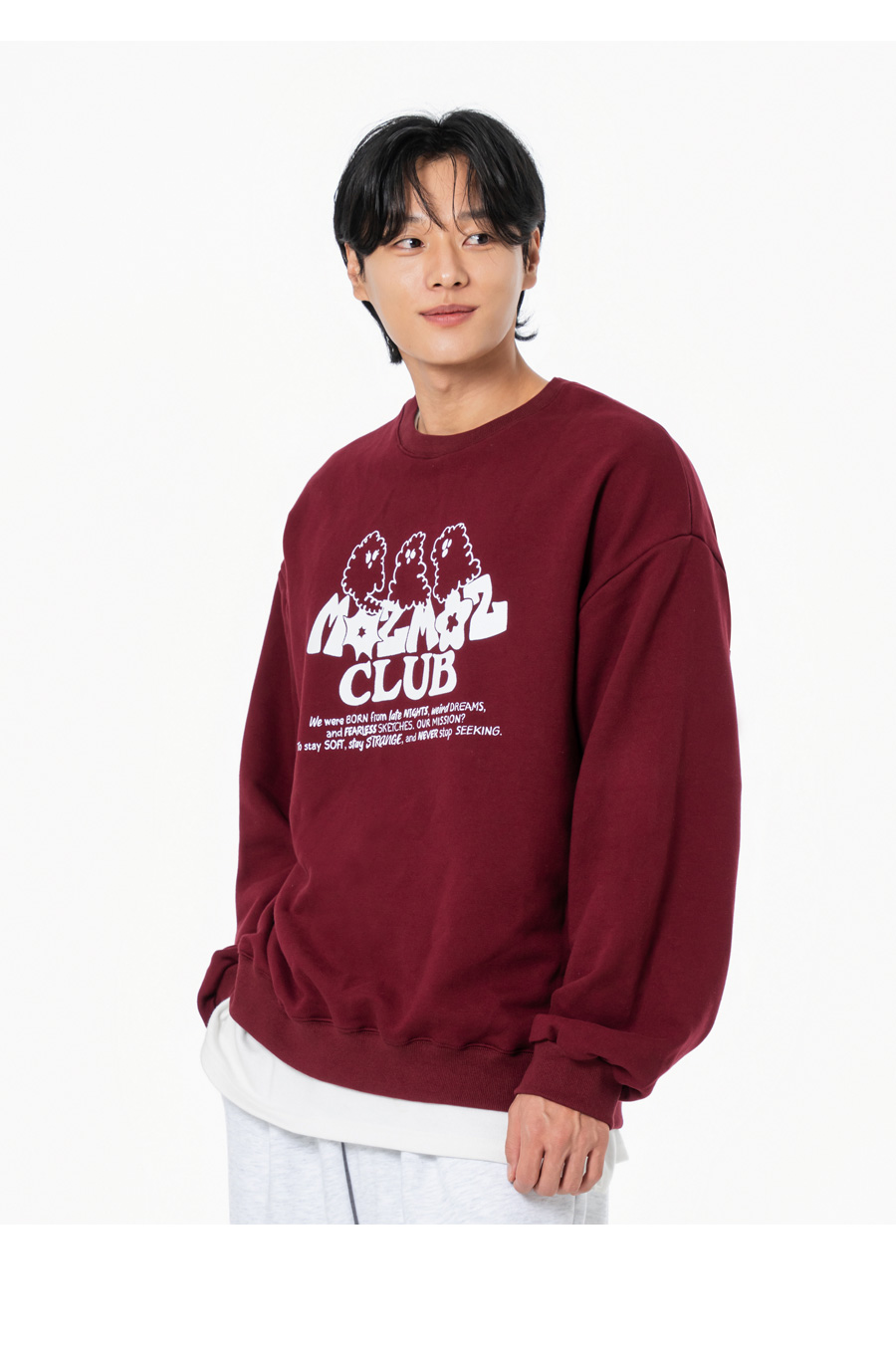 고스트 클라우드 그래픽 오버핏 맨투맨 버건디