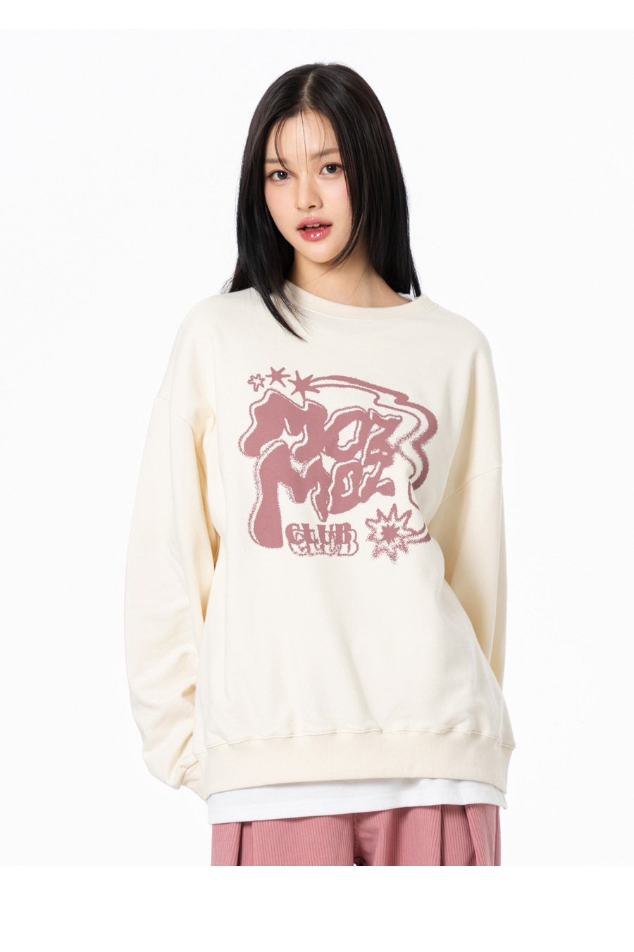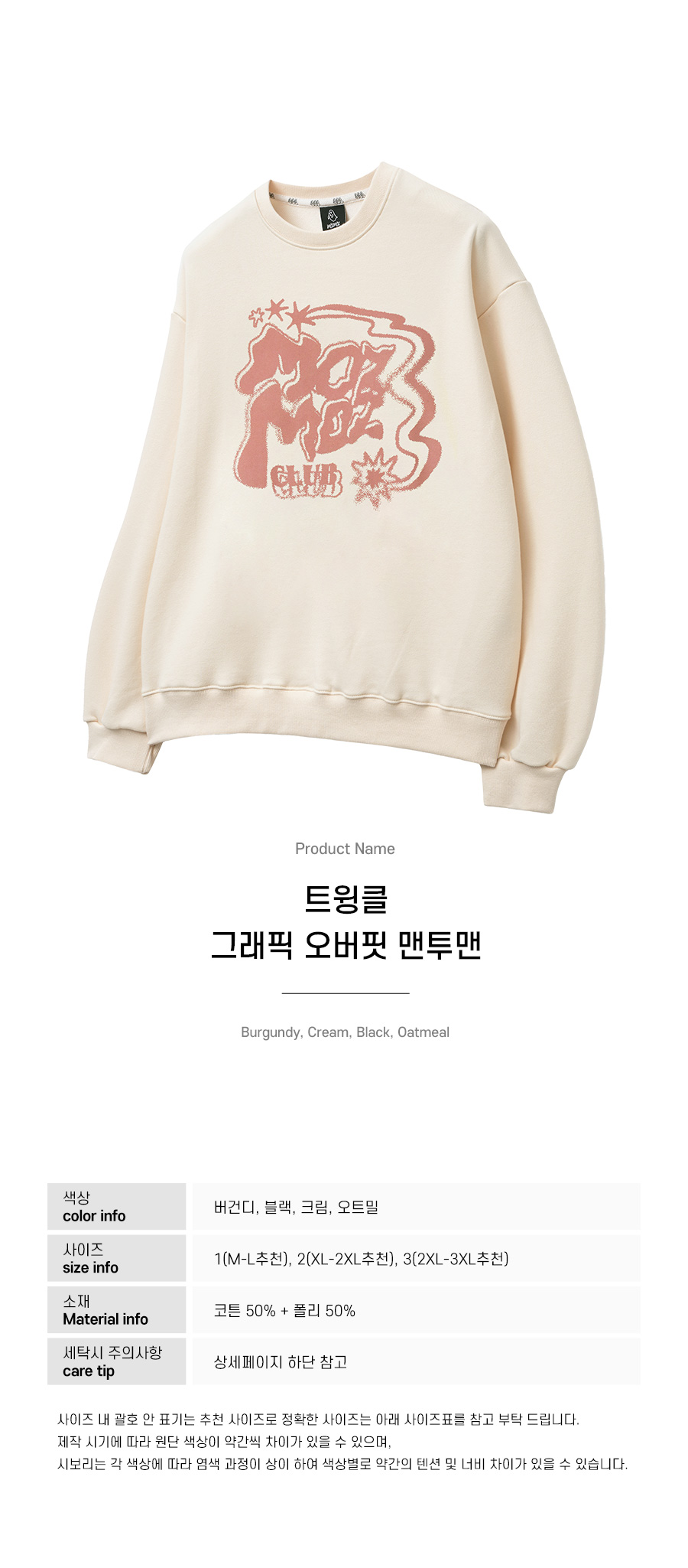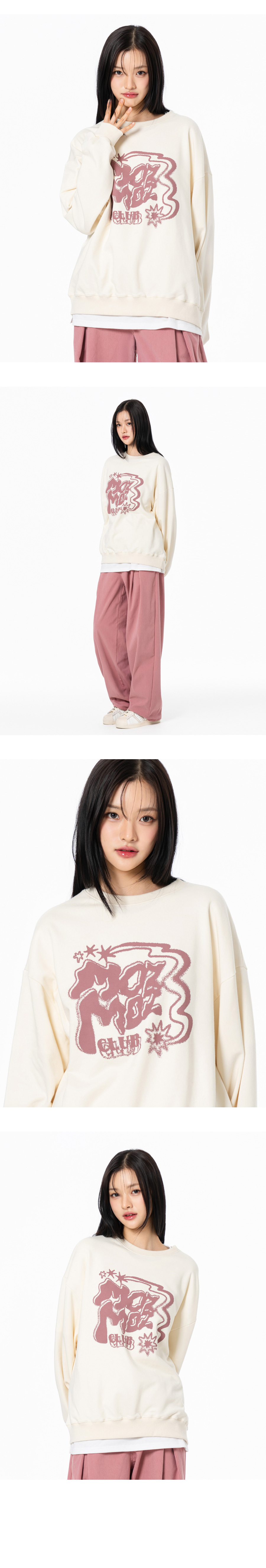 트윙클 그래픽 오버핏 맨투맨 크림