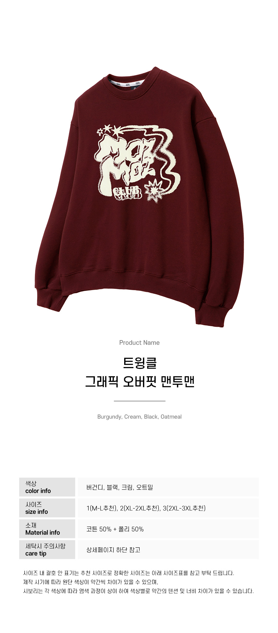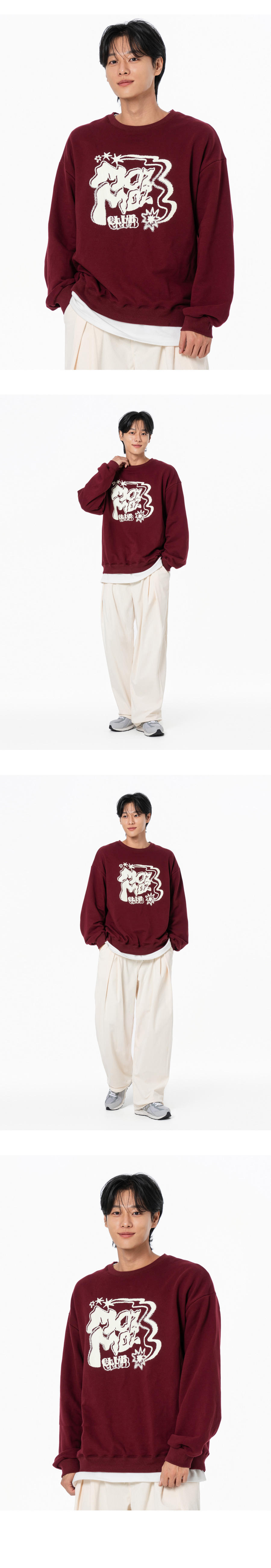 트윙클 그래픽 오버핏 맨투맨 버건디