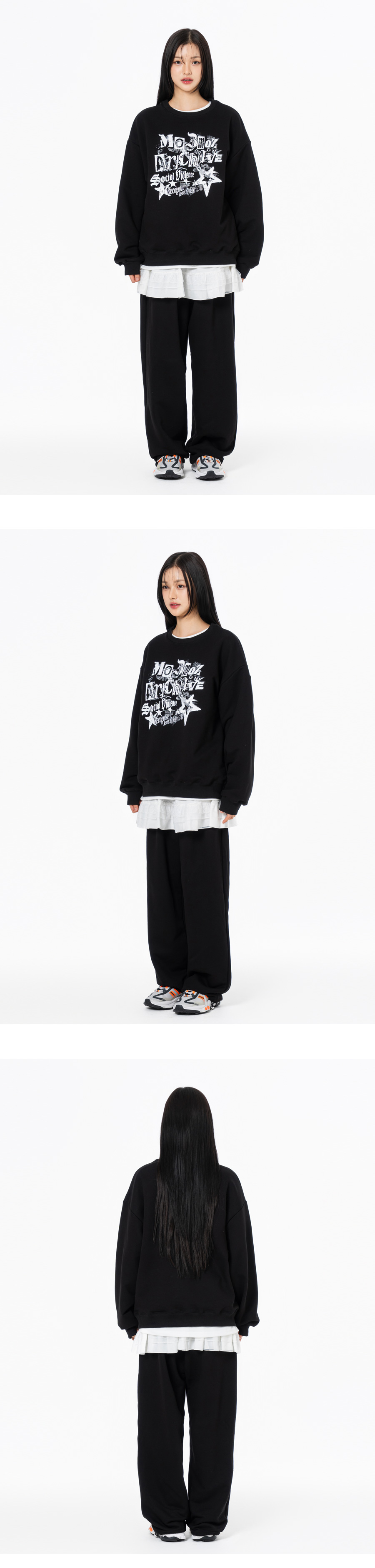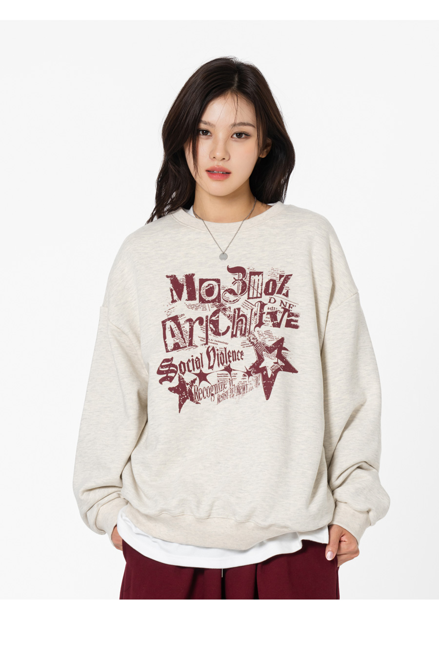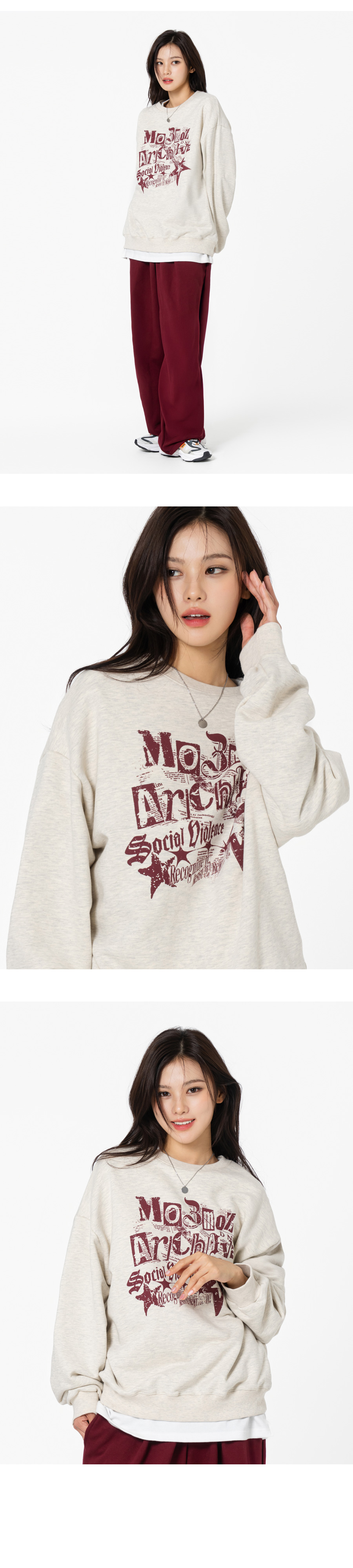 소셜브이 그래픽 오버핏 맨투맨 오트밀